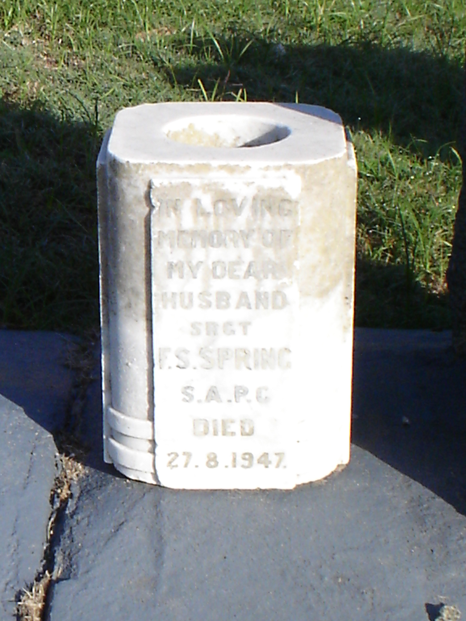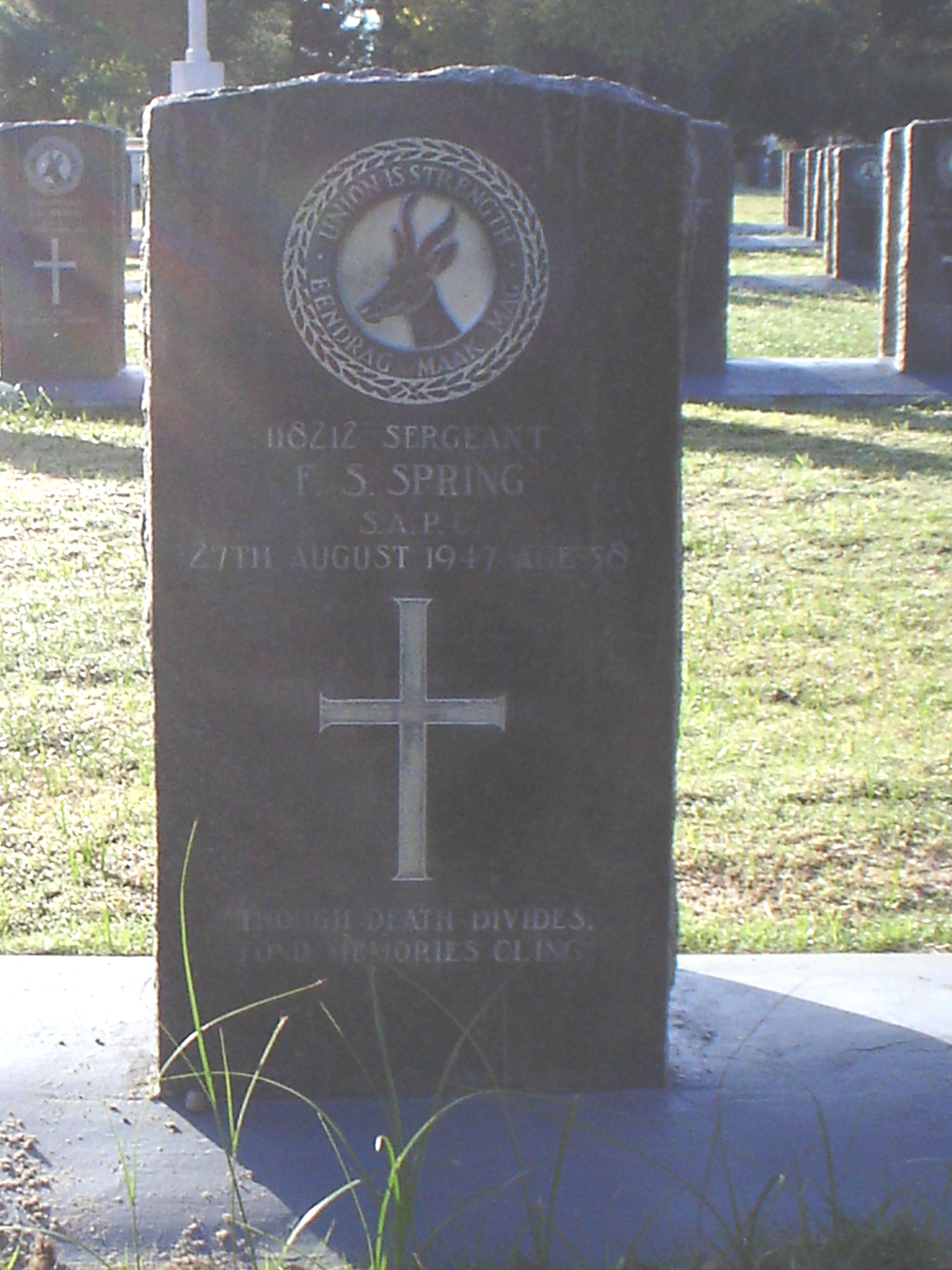 Son of Mr. and Mrs. A. E. Spring, of Stellenbosch, Cape Province. Born Swansea, Wales