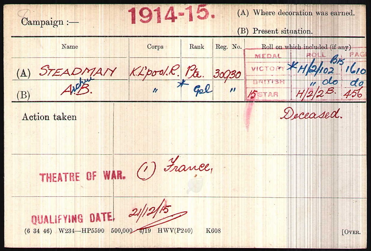 Son of Magdelena W. Steadman, of 18, Essex St., Woodstock, Cape Province, South Africa, and the late Arthur Steadman. Born at Cape Town, South Africa.