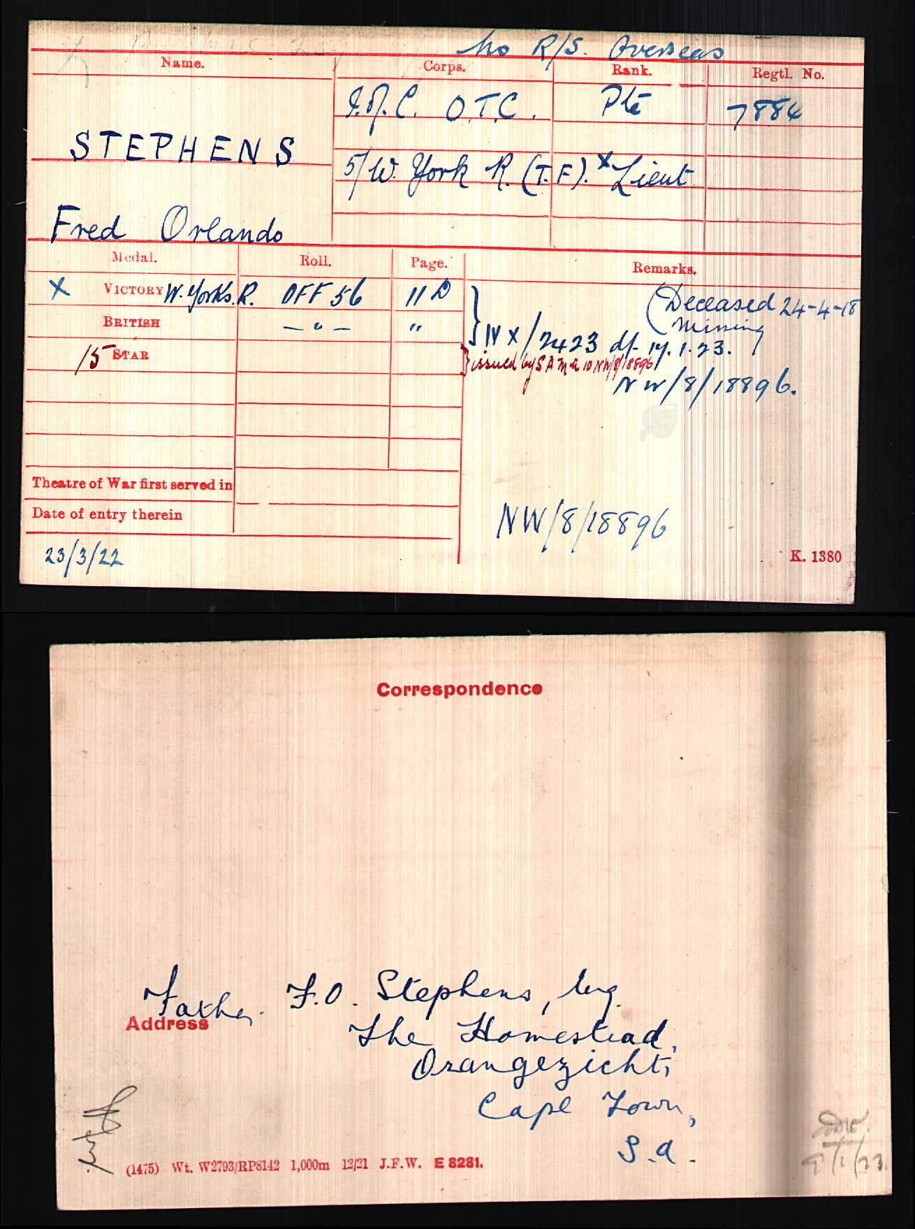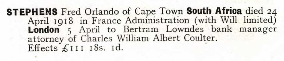 Son of Frederick Orlando Stephens and Agnes Elizabeth Stephens, of Oranjezicht Homestead, Cape Town, South Africa.