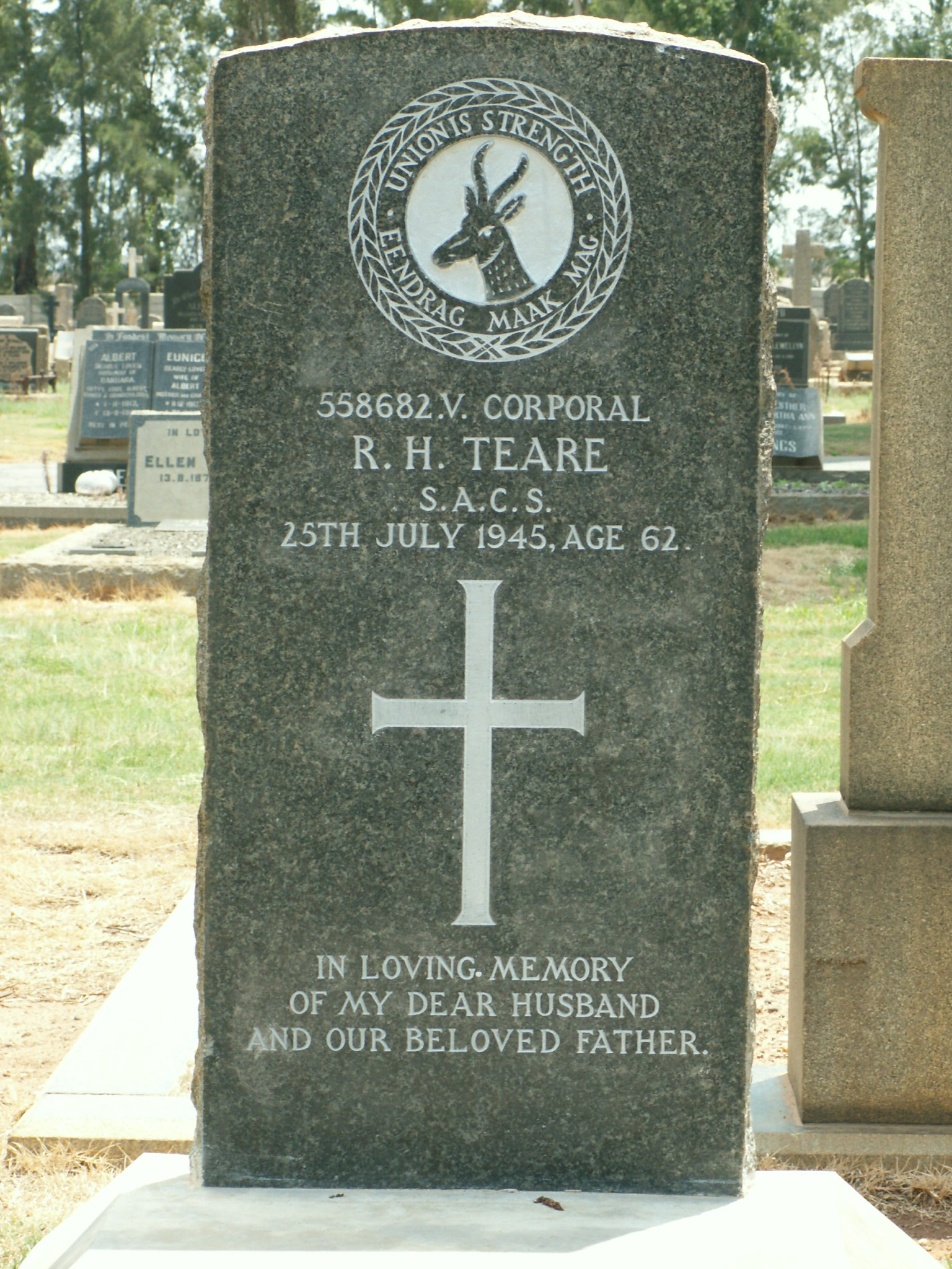 Son of William and Catherine Jane Teare; husband of Alice Ann Teare, of Benoni. Born Isle of Man. A banksman.