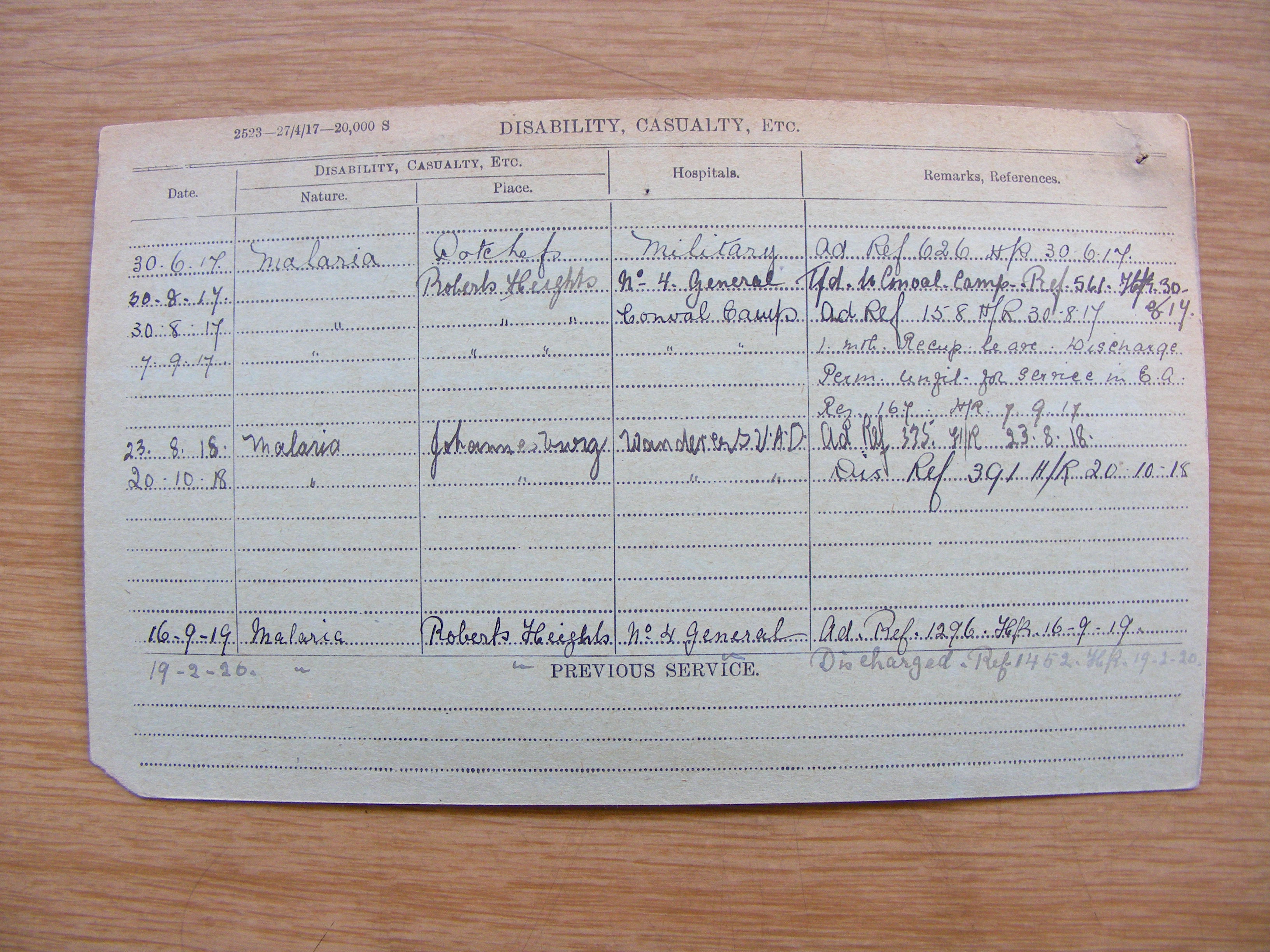 Other Casualties from this Regiment