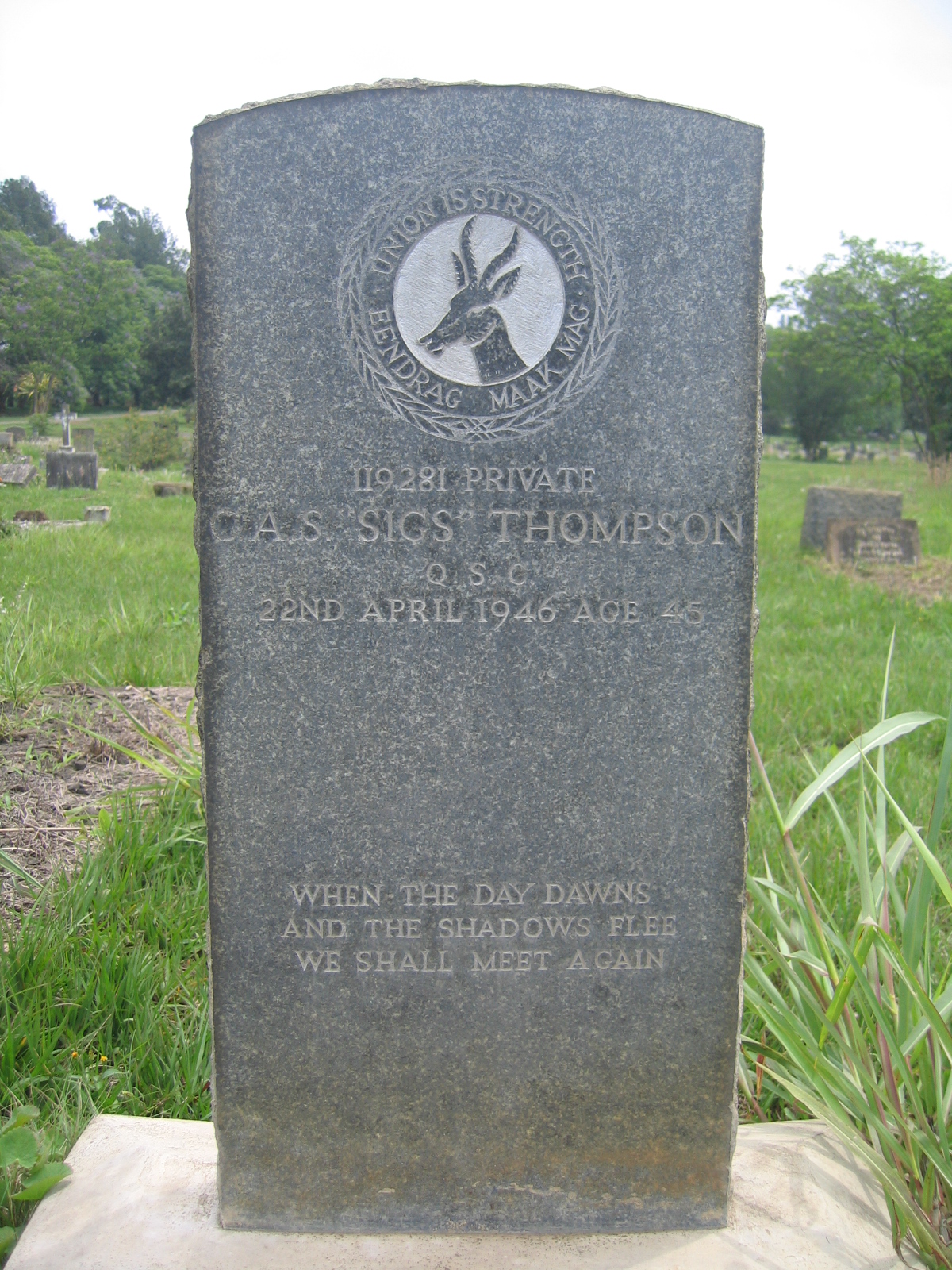 Son of William and Lily Catherine Cameron Thompson, of Pietermaritzburg; husband of Ethel Nora Thompson, of Pietermaritzburg. Born Natal. A commercial clerk.