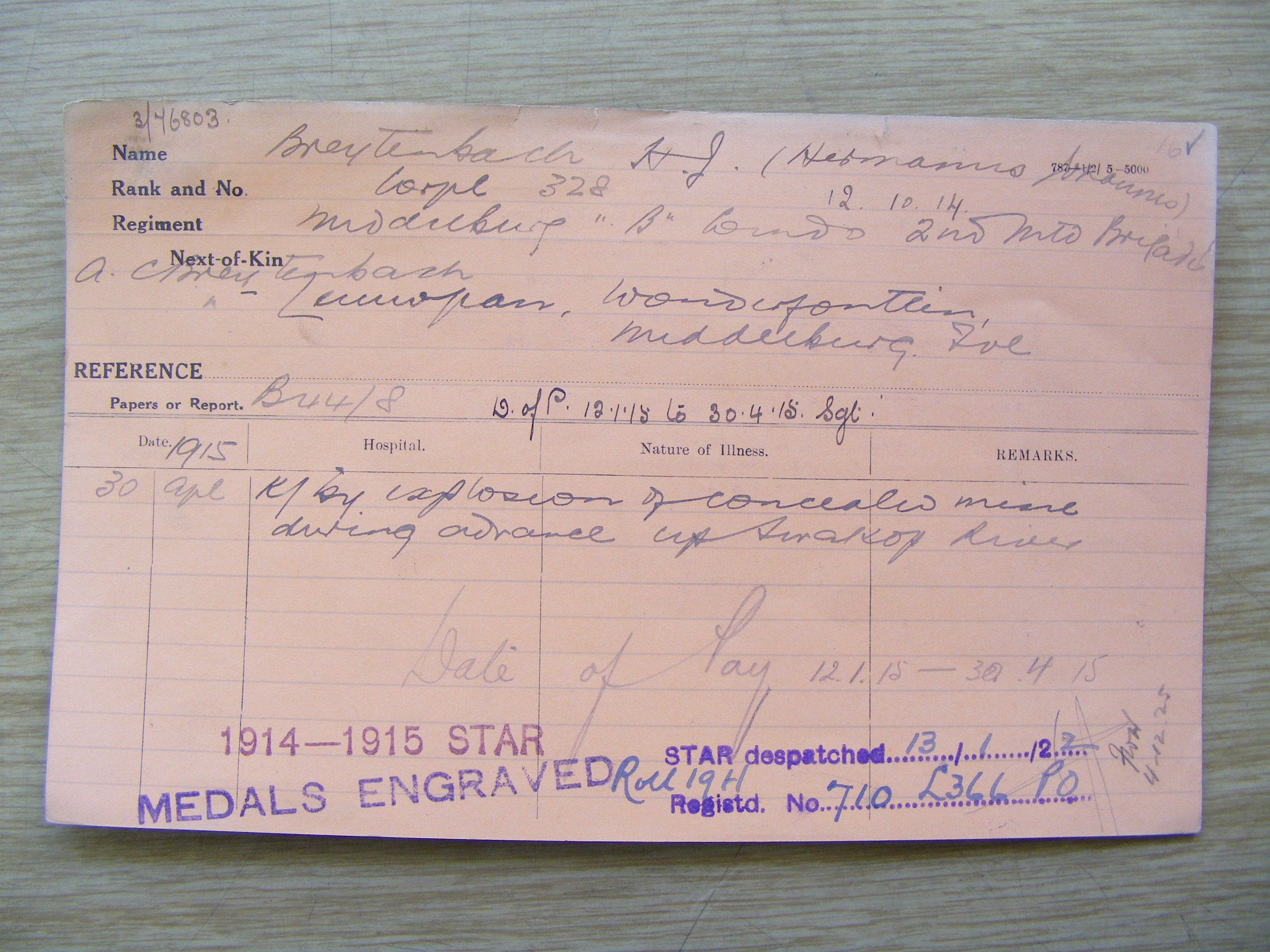 Son of Jacob Coenraad and Anna Catherina Breytenbach, of Leeuwpan, Wonderfontein, Middelburg, Transvaal