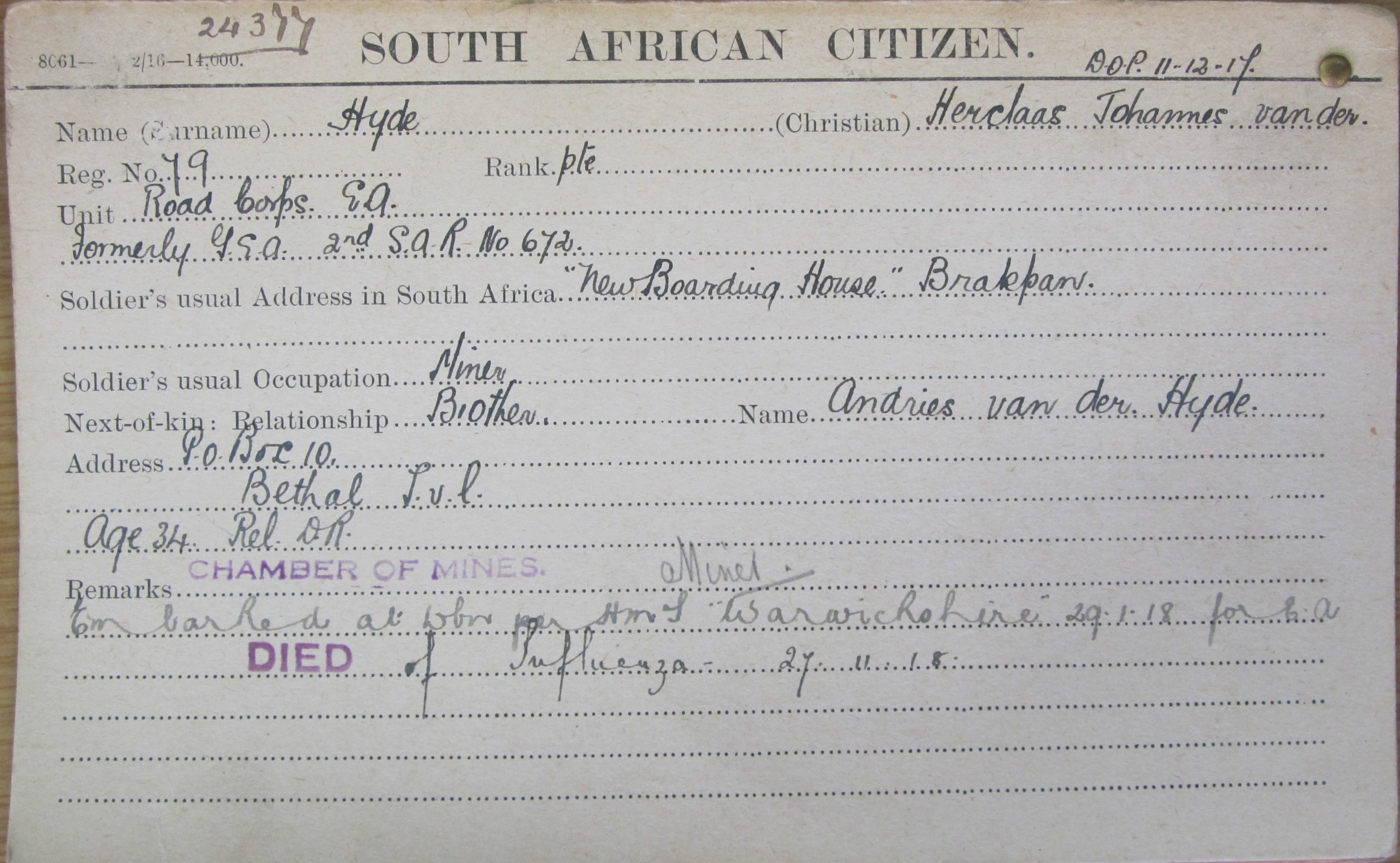 Brother of Andries van der Hyde, of Bethal, Transvaal