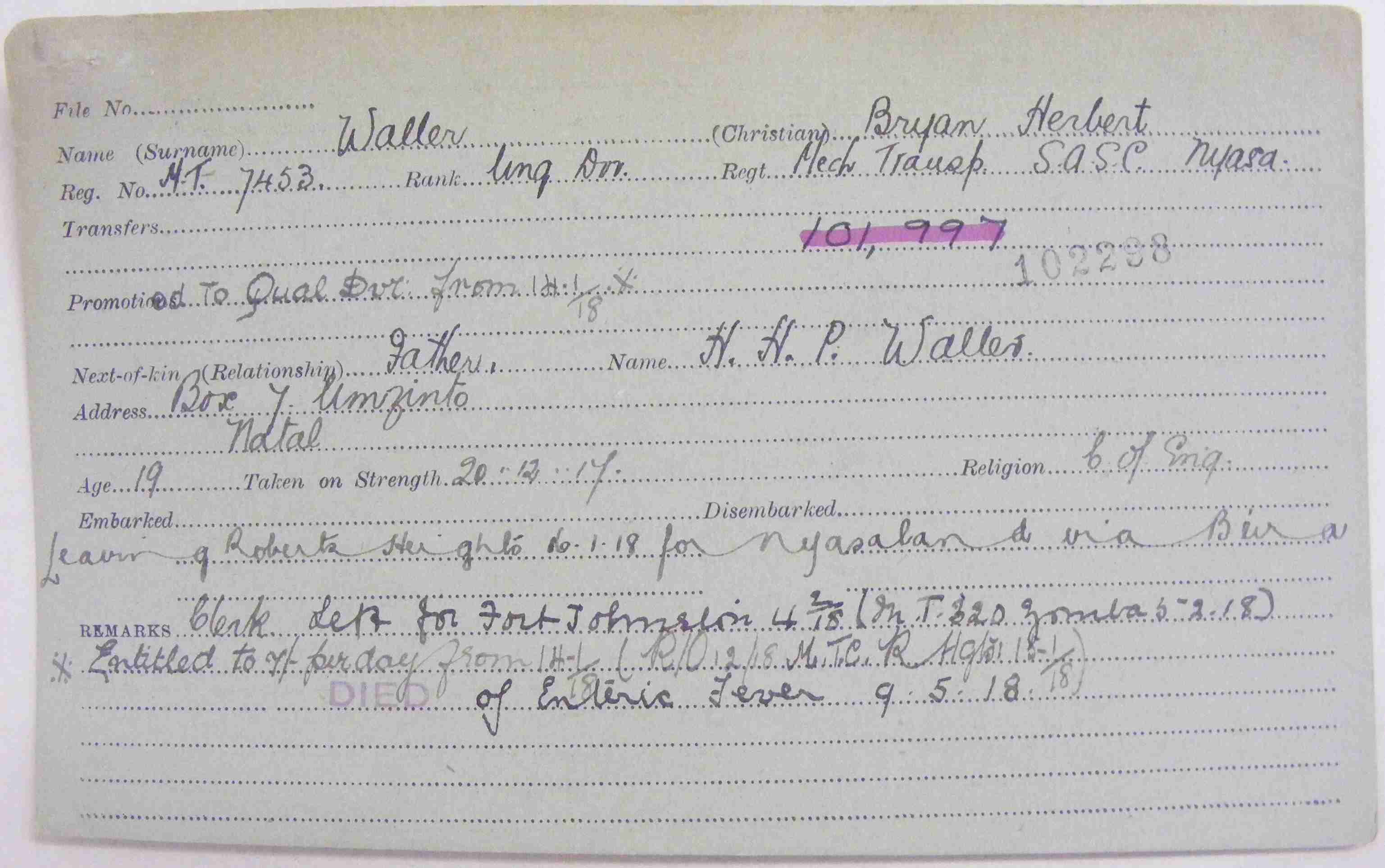 Son of H. H. P. Waller, of Box 7, Umzinto, Natal.