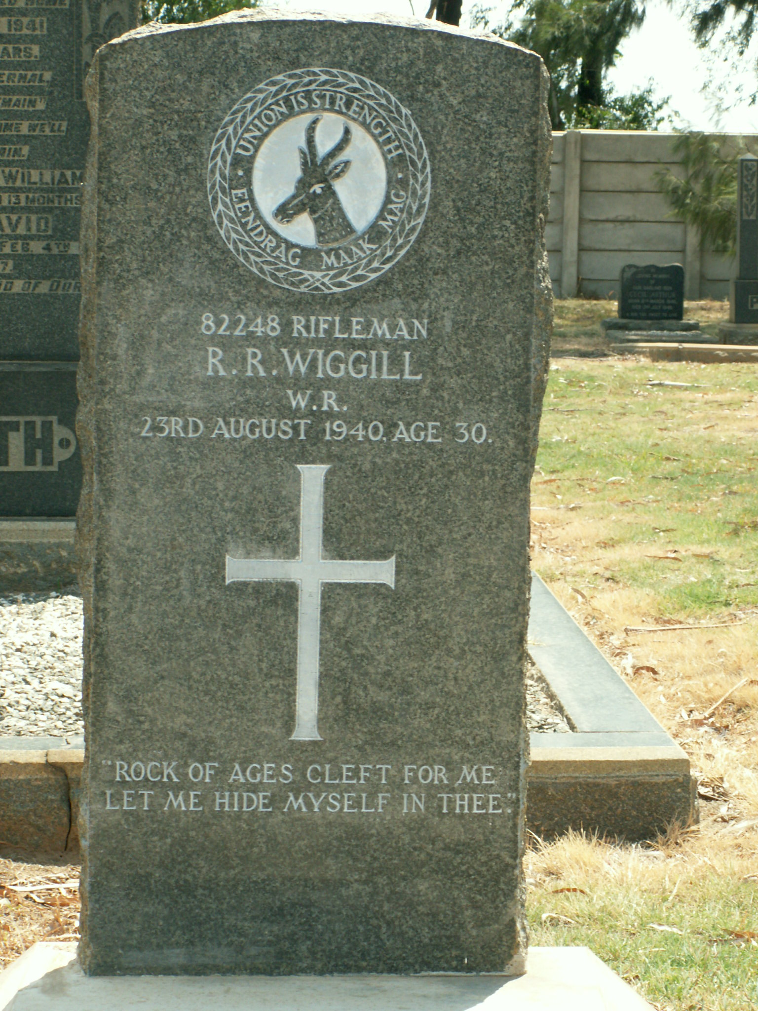 Son of William Amna and Frances Jane Wiggill, of P.O. Izingolweni, Natal. Born Transvaal. A grocer. His brother also died in service
