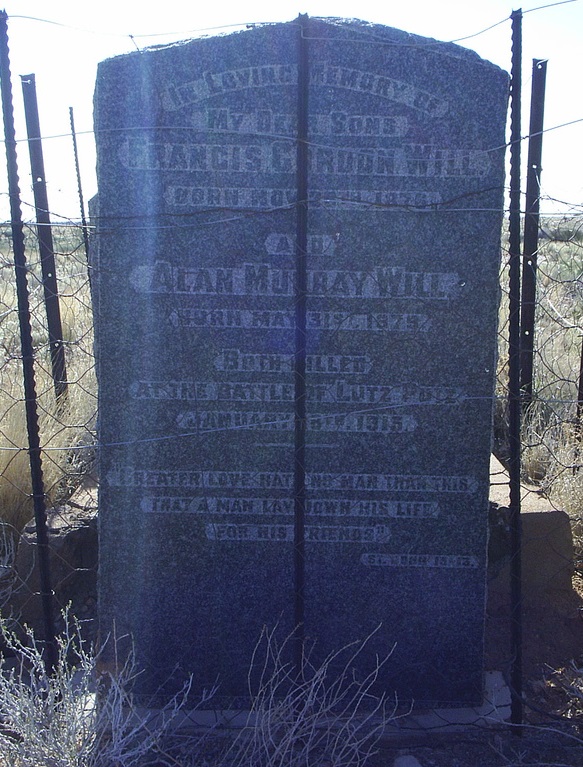 Next of kin, of F. A. Will, of Ruitzifontein, Colesburg. b. 28-Nov-1876. His brother also died on service |