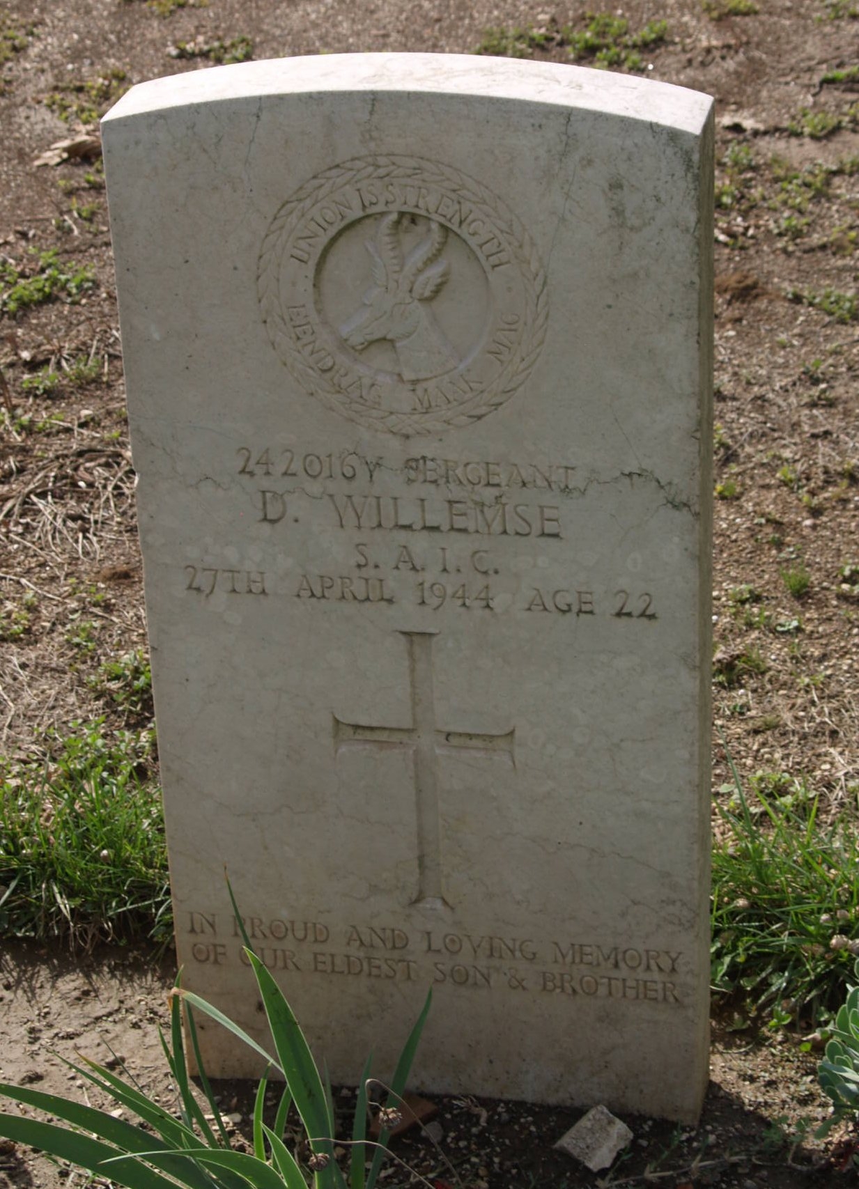 Son of Matheus and Mabel Willemse, of Parow, Cape Province, South Africa. Born Woodstock. A junior clerk.