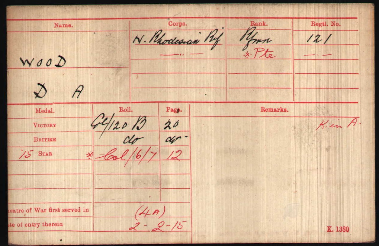 Son of James and Jeanie Miller Wood, of Queenstown, Cape Province. Born Milton, Glasgow, Lanark, Scotland