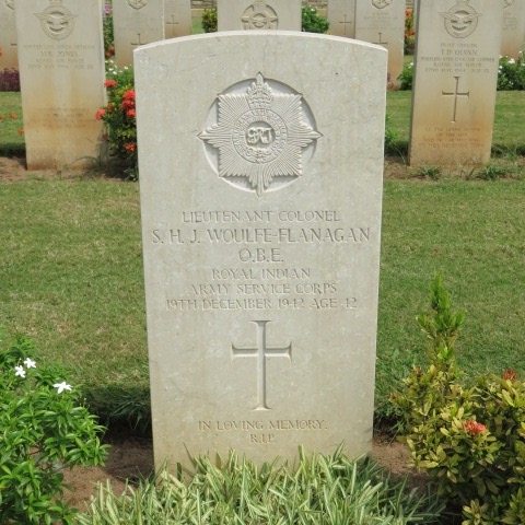 Son of Stephen and Gertrude Woulfe-Flanagan; husband of Margaret Woulfe-Flanagan, of Cape Town, South Africa. Stephen Hugh James Woulfe-Flanagan was born on 9 February 1900. He was first commissioned Unatt. 2-Lt. 17/12/19. I.A. 2-Lt. 2/5/20. Lt. 17/12/20. Capt. 17/12/26. Maj. 17/12/37. Staff Capt. 25/2/37 to 31/7/39. Brig. Maj. 1/8/39. His India General Service 1908-35, 2 clasps, Waziristan 1919-21, North West Frontier 1930-31 (Lieut. S. H. J. Woulfe-Flanagan, 2-15 Sikhs), 2nd clasp loose was sold for 120 pounds at Dix Noonan and Webb on 21st September 2007 |