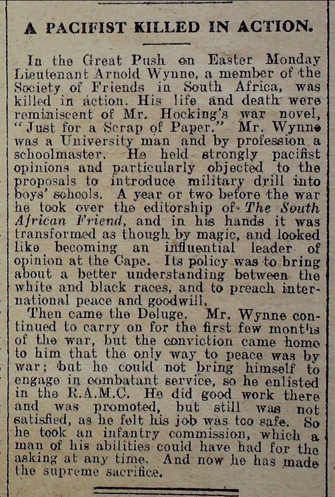 Son of Edwin Hodgson and Lucy Wynne, of 29, Gwendolen Road, Leicester. Born Stafford, Staffordshire, England in April 1880. Educated Sidcot School. Lecturer at Cape Town University. ref. South African Roll of Honour 1914-1918