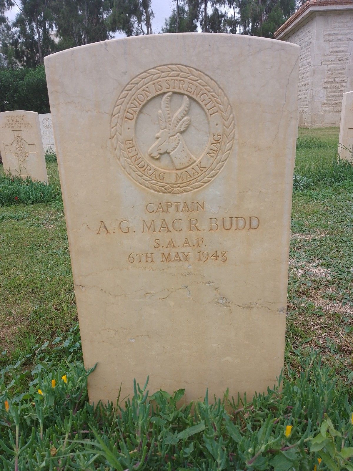 Son of Mrs. C. G. Budd. Husband of Doreen (nee Clark) Budd, of Johannesburg. ***CWGC had him as 1 Sqdn. |