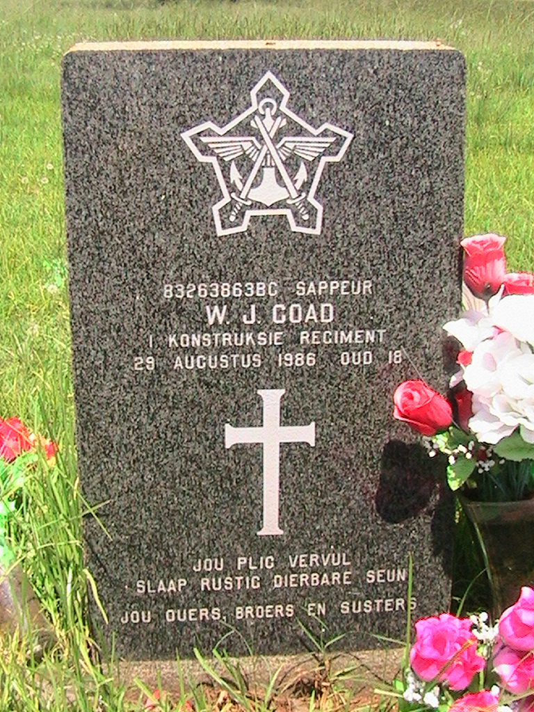 Died in Military Vehicle Accident, at Komatipoort, water tank rolled |