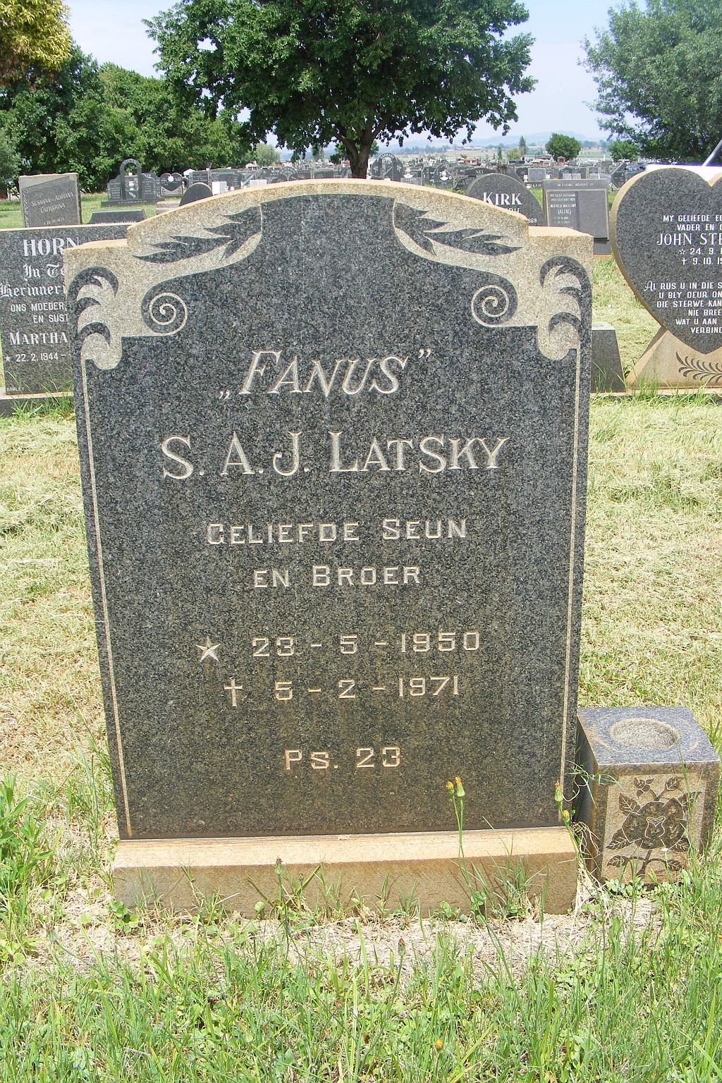 Died in Military Vehicle Accident, on Old Pretoria / JNB Road, near Valhalla. The Kombi which he was driving skidded on the wet road and overturned. |