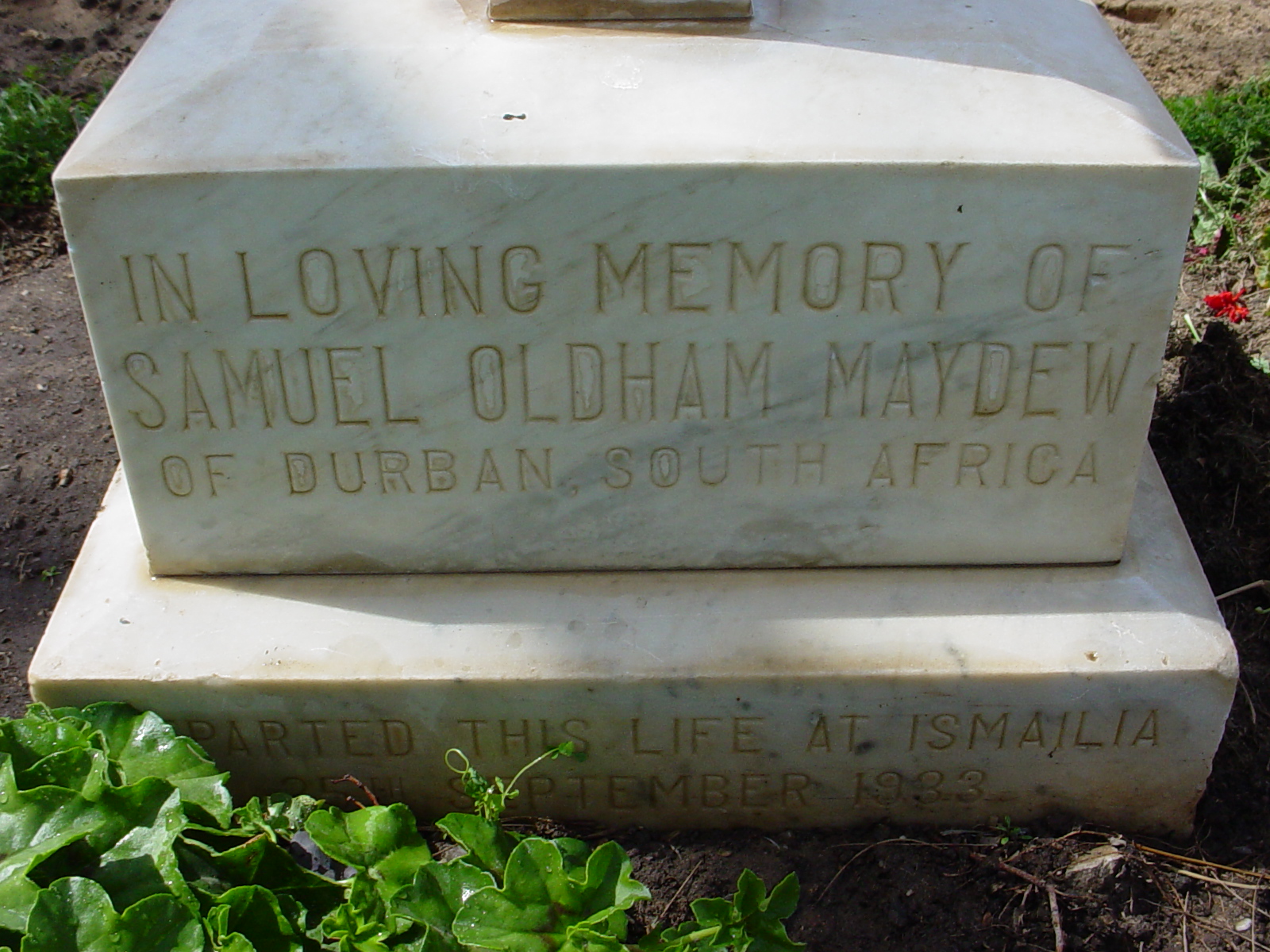Died at St. Vincent de Paul Hospital, Ismailia, Suez Canal, Egypt, en route to South Africa