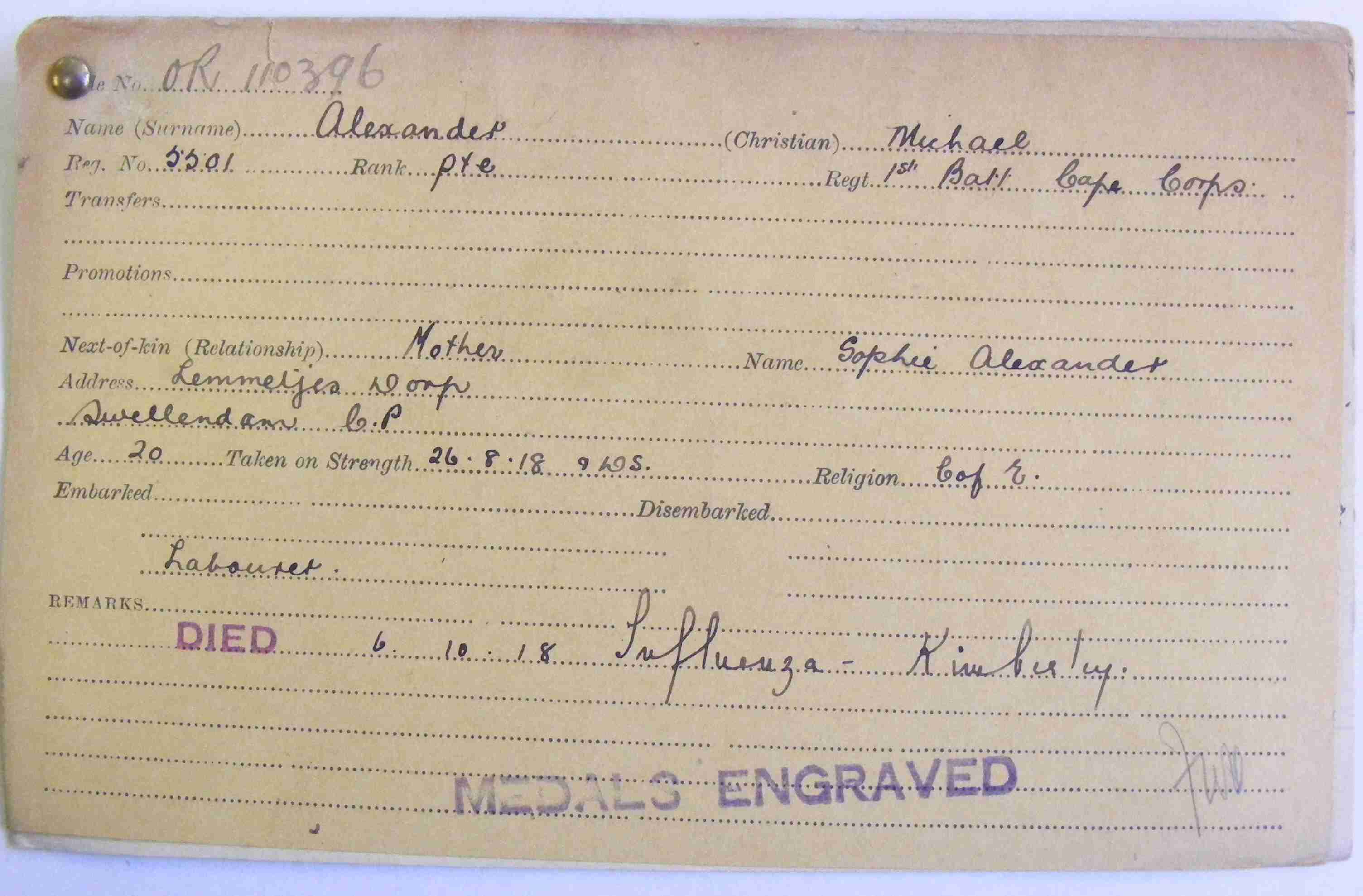 Son of Sophie Alexander, of Lemmetjes Dorp, Swellendam, Cape Province