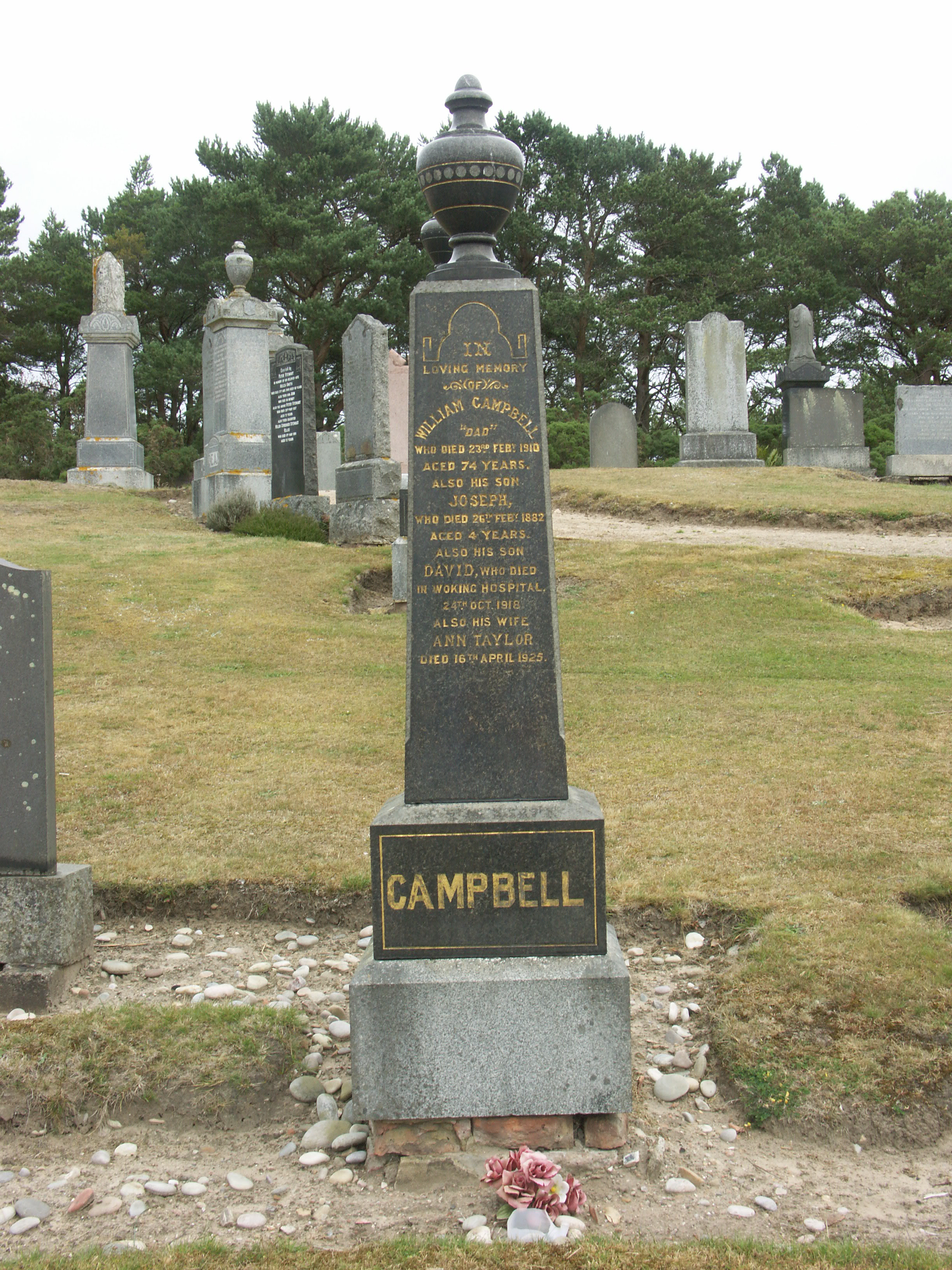 Son of William and Ann Taylor Campbell, of 33 Queen Street, Lossiemouth, Scotland. Brother of Mrs. Jane Smith, of 33 Queen Street, Lossiemouth, Scotland. Born Lossiemouth, Scotland. A sailor.