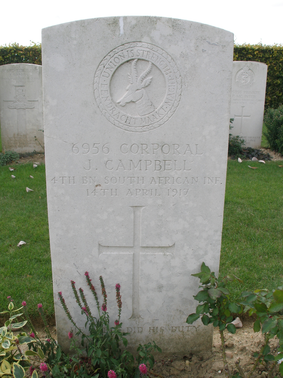Son of James and Meta Campbell, of Cradock, Cape Colony. Husband of Rosina Ellen Campbell, of 18 Compton Street, Kimberley. Served in the South African Campaign and German South West Africa, 1914-15.