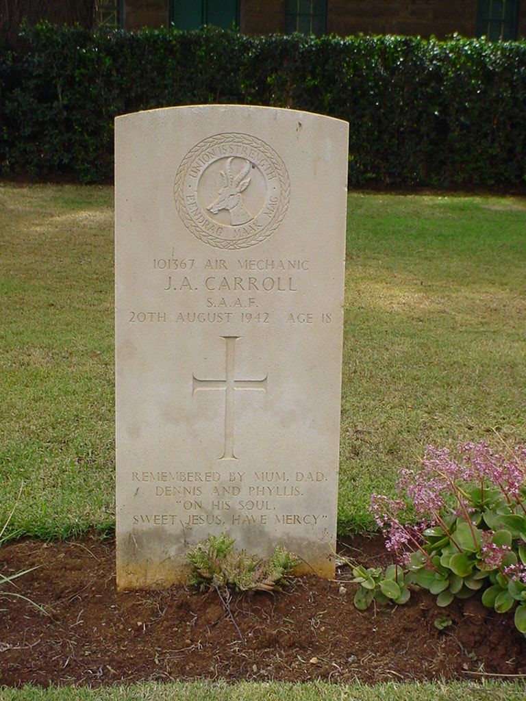 Son of William J. Carroll and Mona M. Carroll, of Johannesburg, Transvaal, South Africa. Former Scout in 1st St Patrick's Group, Johannesburg, Transvaal.