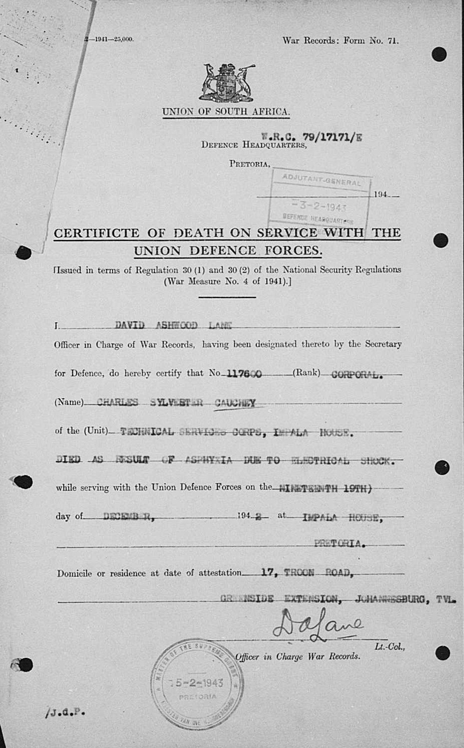 Son of William A. and Mary A. Caughey, of Johannesburg.