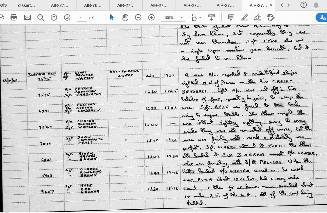 Died in Aircraft Accident, Blenheim Z9549, while returning from an anti-shipping sweep. His plane crashed about 10 miles south east of the landing ground, at Fuka, Egypt