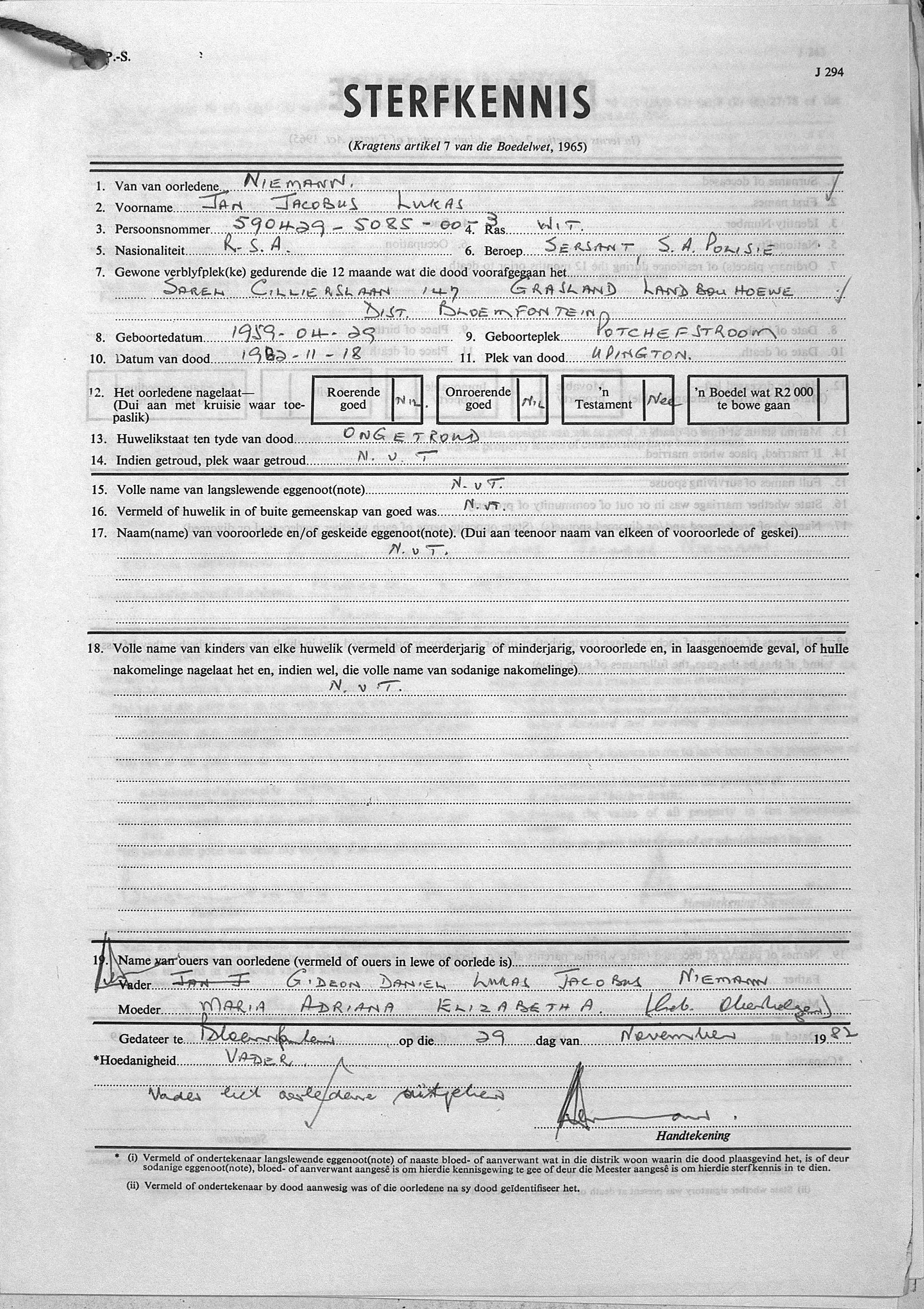 Killed in action, Counter-insurgency duty in Ovamboland