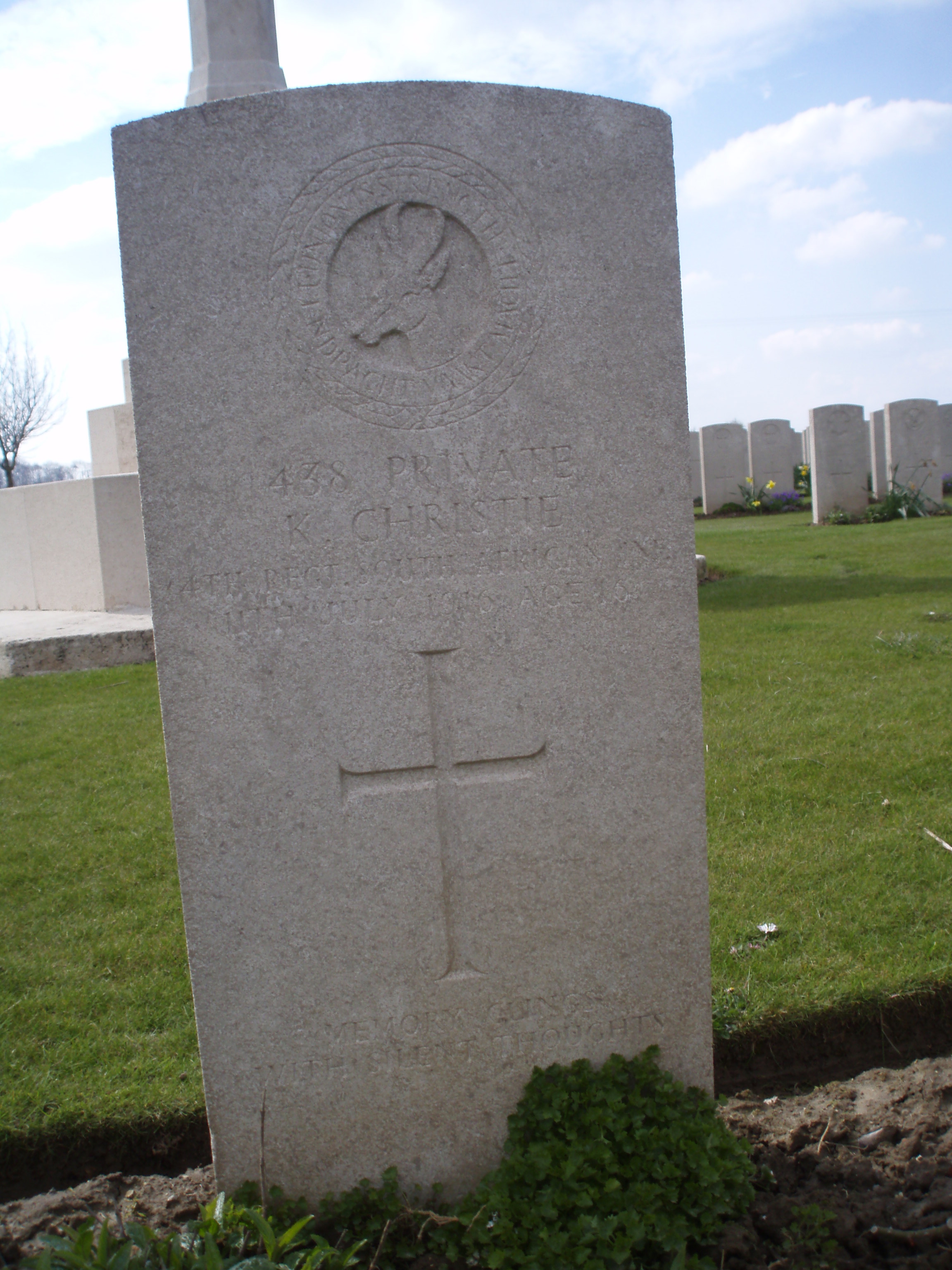 Son of William and Elizabeth Christie, of 99, Market Street, Pretoria. Born Lochee, Dundee, Scotland. A post office employee. Age 16 years, 6 months