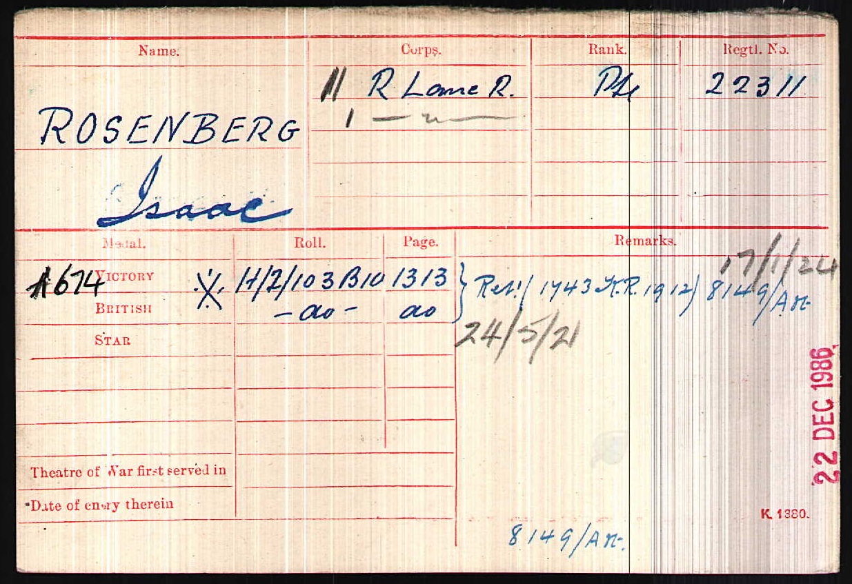 Son of Barnet and Annie Rosenberg, of 87, Dempsey St., Stepney, London. Born at Bristol. Some critics of the time considered Rosenberg the best of the war poets after Wilfred Owen. Isaac Rosenberg was an English poet of the First World War who was considered to be one of the greatest of all English war poets. His "Poems from the Trenches" are recognized as some of the most outstanding written during the First World War.