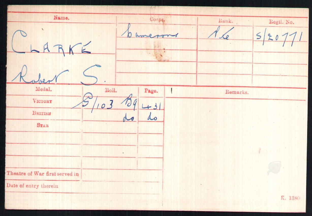 Born and resided in Durban, South Africa. ***Might be CLARKE. ref. Soldiers Died in Great War CD