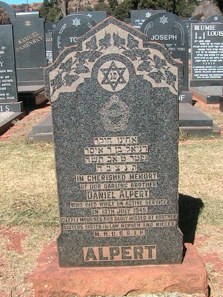 Son of Mrs. S. Alpert, of Yeoville, Johannesburg. ***Jewish.