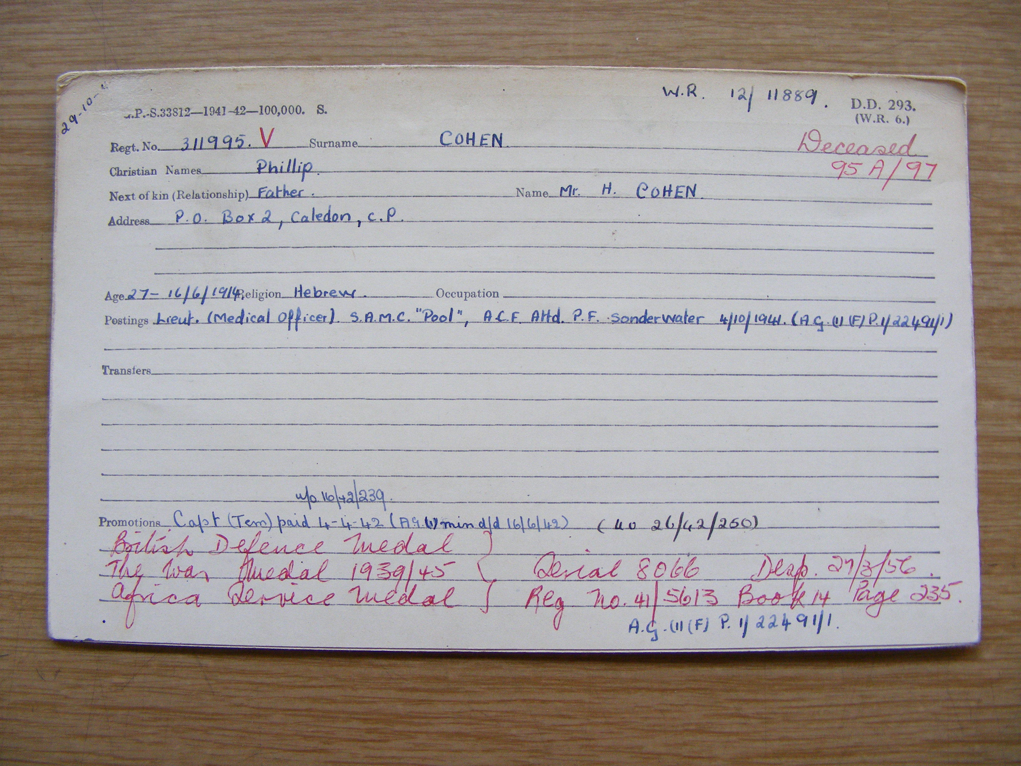 Son of Harris and Sarah Riva Cohen, of Cape Town, South Africa. M.B., Ch. B. Born Caledon. A medical practitioner. ***Jewish |