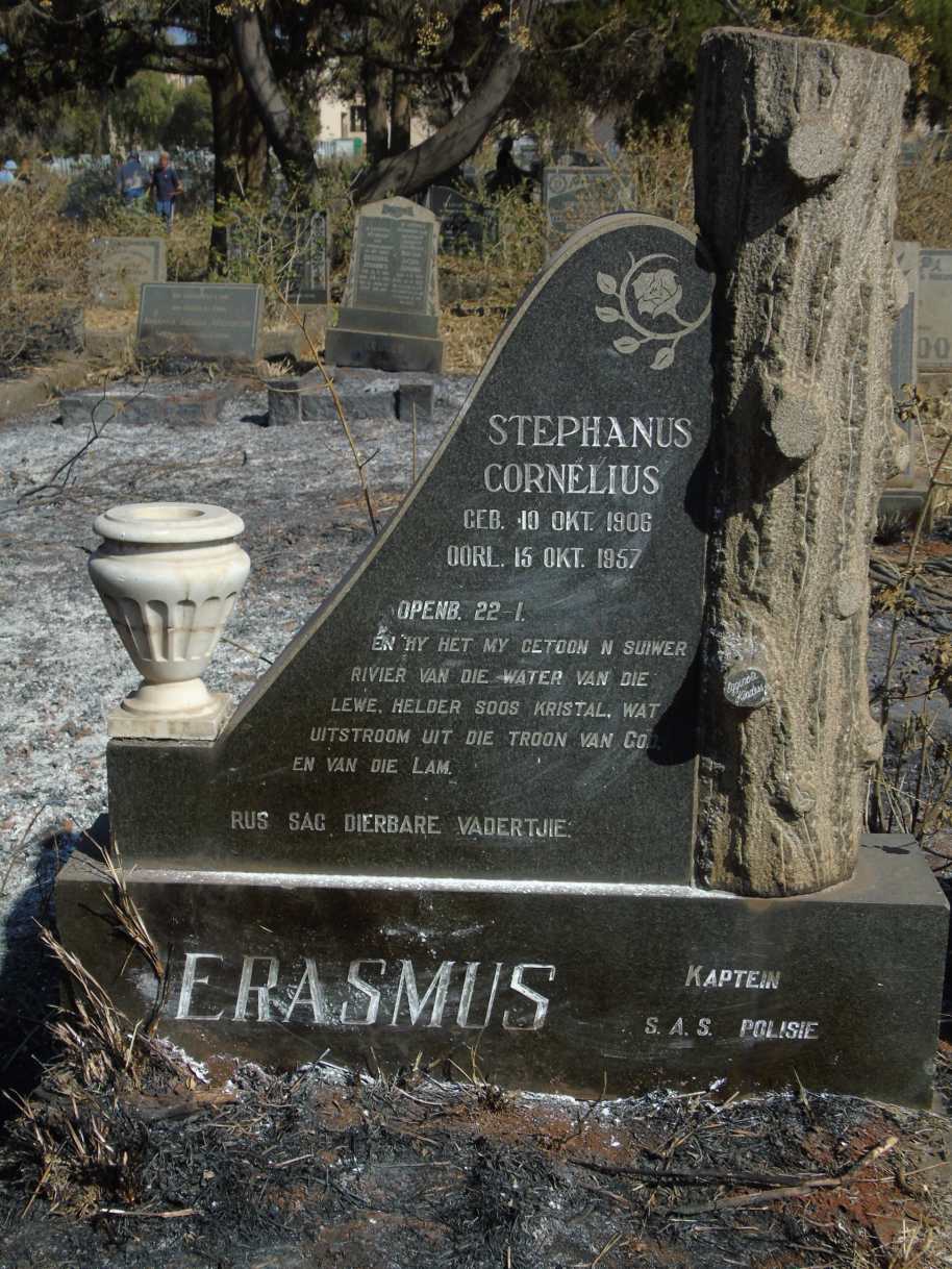 Husband of Hester Lasea Erasmus (nee Venter), of 13 Van Heerden Street, Capital Park, Pretoria. They had 1 daughter. Born Cape Province.