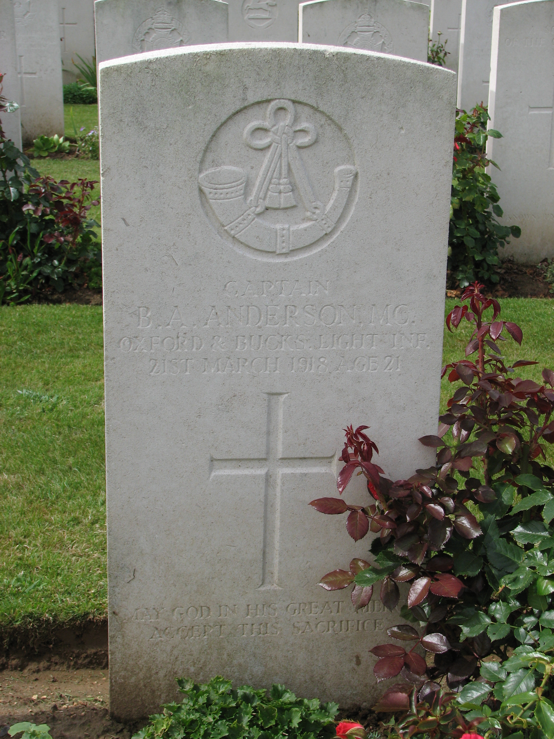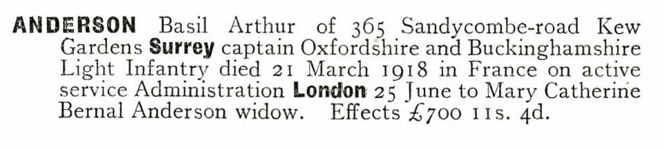 Son of Hugh and Ellen (Nellie) Wiles Anderson. Husband of Molly Anderson, of 143, High Street, Ryde, Isle of Wight. Born Newcastle, Natal, South Africa. Educated Newcastle High School. His brother Augustus Eric Hugh Anderson also died in service. Commemorated on Newcastle WWI Memorial in lychgate at Newcastle Old Cemetery, KZN