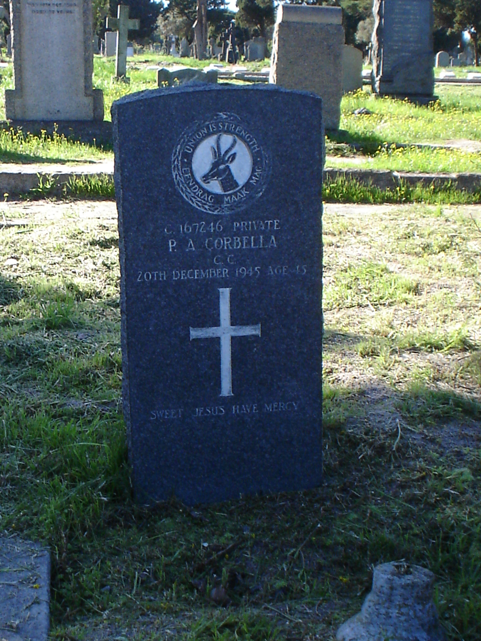 Son of Joseph and Catherine Corbella; husband of Doris Corbella, of Queens Road, Woodstock, Cape Town. A painter in the building trade. |