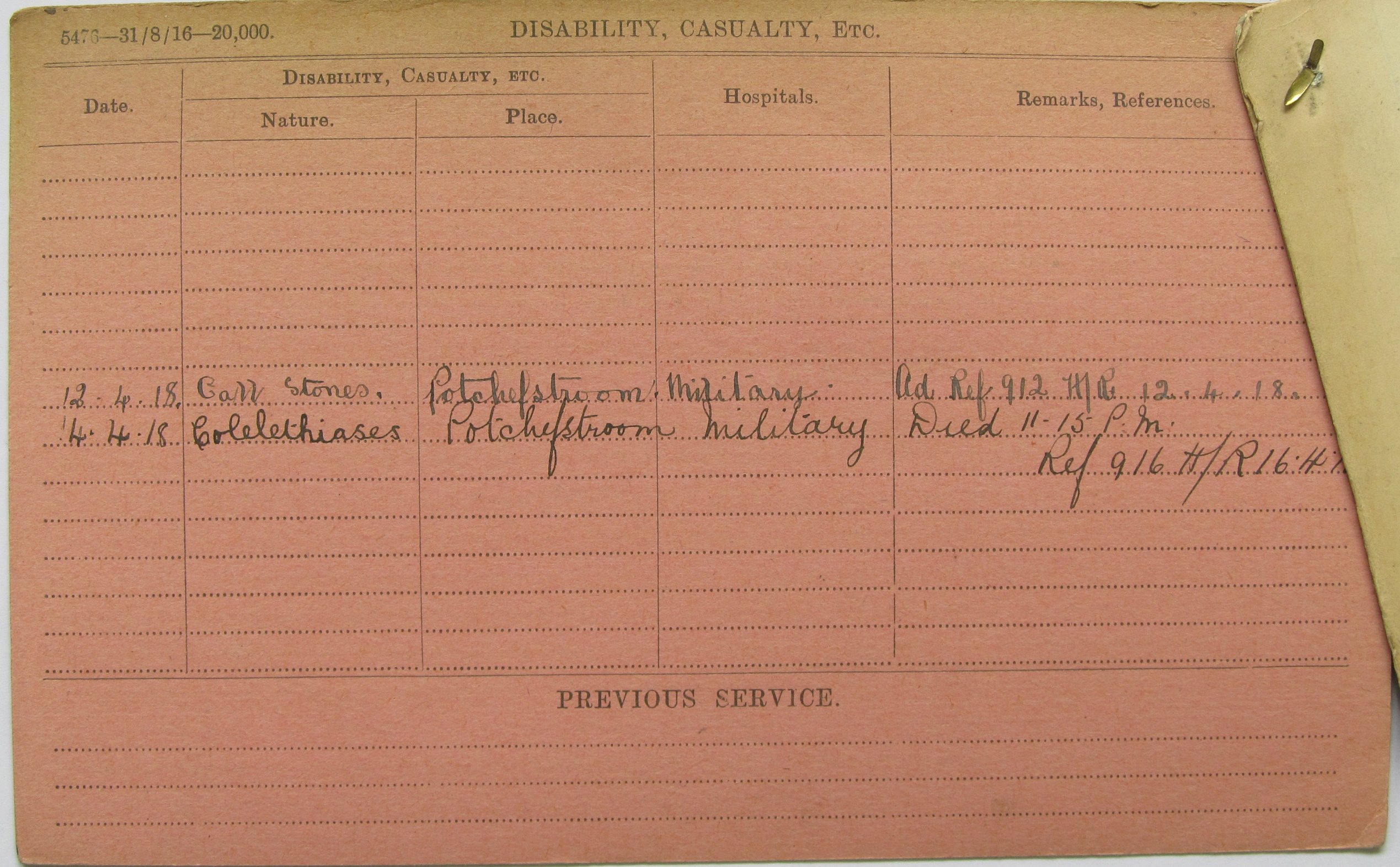 Medical Training Depot PotchefstroomOther Casualties from this Unit |
