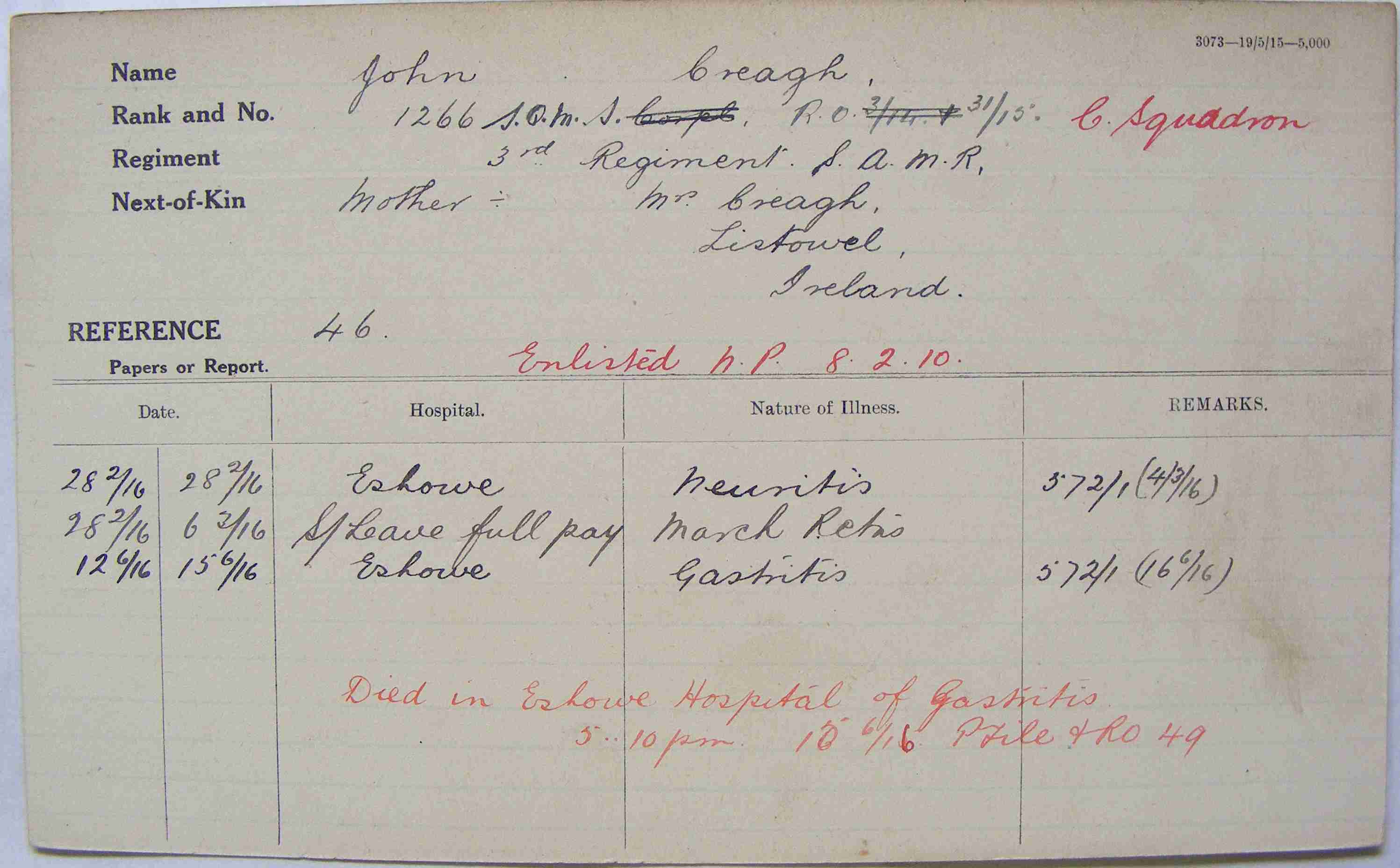 Son of Francis and Ellen Creagh, The Castle, Listowel, County Kerry |