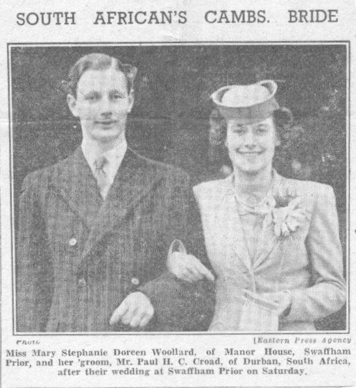 Daughter of Mr. and Mrs. Woollard, of Manor House, Swaffam Prior, Cambridgeshire. Wife of Paul Harry Cedric Croad.
