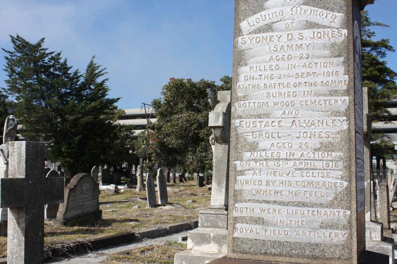 Son of the late Hon. Mr. Justice Sydney Twentyman Jones and of Mrs. F. H. Jones, of Baroda, Cape Province, South Africa. Born 7/6/1891. Educated at St. Andrew's College, Grahamstown. At St Andrew's from Jan. 1902-Aug. 1905. Joined Imperial Light Horse when war broke out. Served in the Rebellion and G.S.W.A. Went to England, joined a cadet school and was commissioned to the Royal Field Artillery. Served in France through heavy fighting in 1917 and was killed in action in April 1918 during the great German offensive. Commemoration stone in Cape Town (MAITLAND) Cemetery. His brother S D S Jones also died on service |