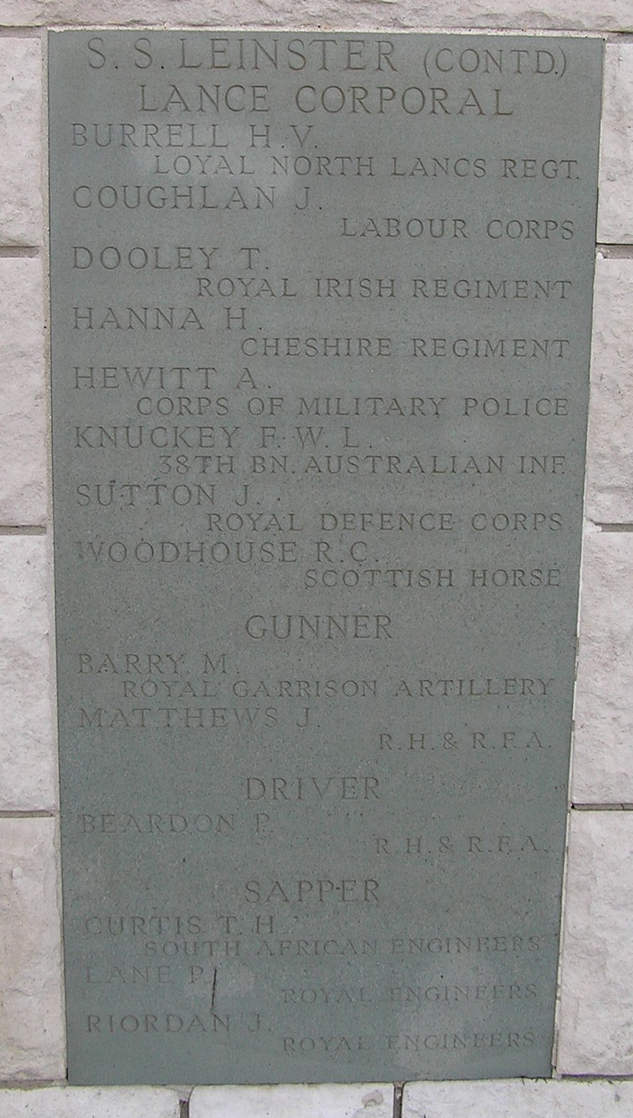 Drowned at sea (from R.M.S. "Leinster")