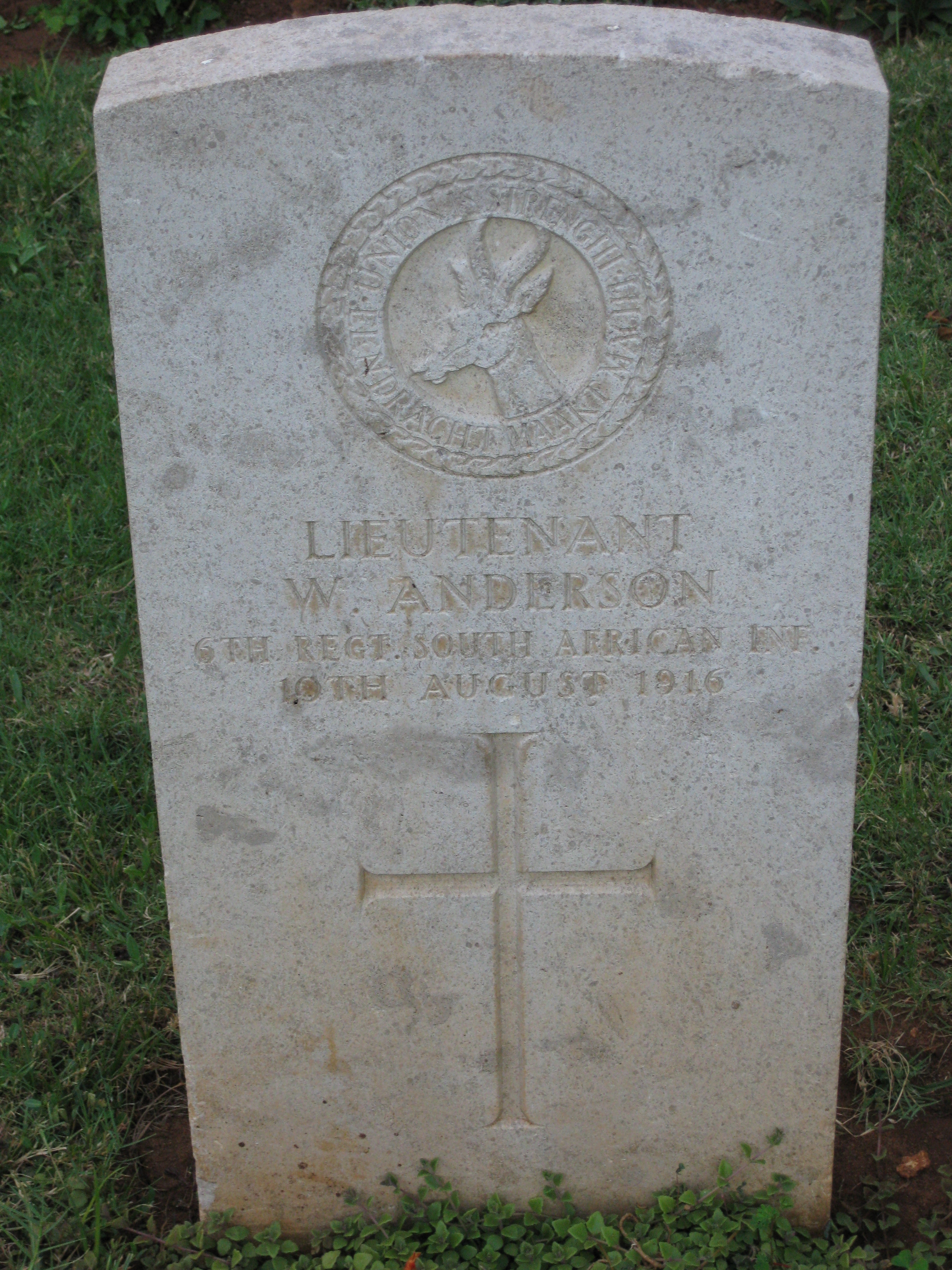 Son of Col. John Anderson and Philippa Charlotte Anderson , of Box 1, Trichardts, Transvaal. Born Aldershot, Hampshire. A mining engineer