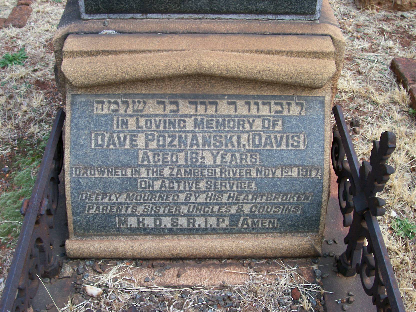 True family name is Poznanski. ***Jewish. Commemoration stone in Johannesburg (Braamfontein) Cemetery