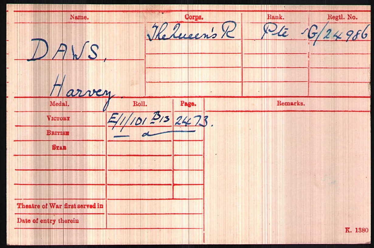 Son of Arthur Hole Daws and Mary Ann Daws, of Wimbledon, Surrey; husband of Maude Florence Daws, of Johannesburg, South Africa.