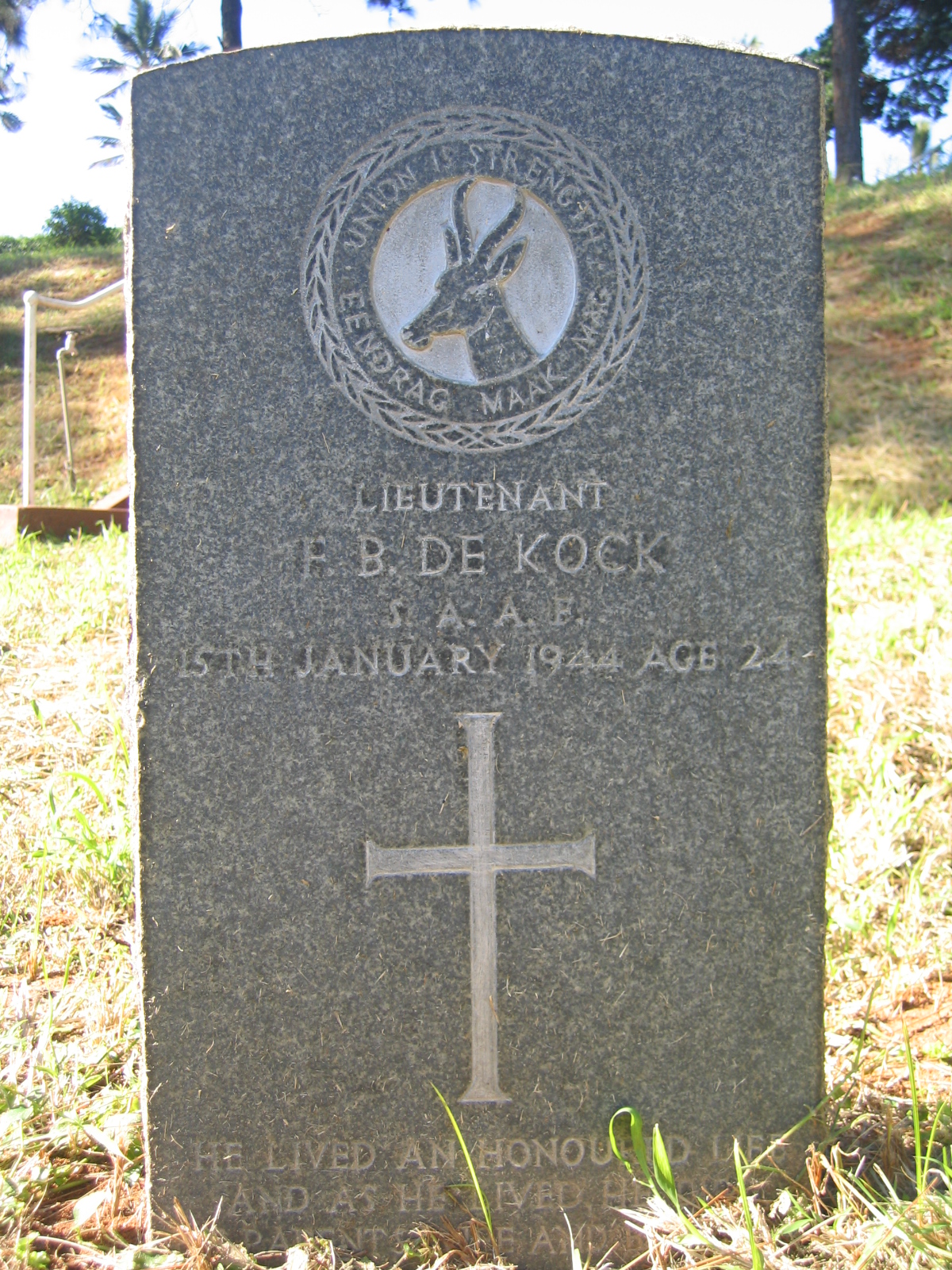 Son of M. A. de Kock and Maria de Kock; husband of Corrie de Kock, of Paarl, Cape Province. |