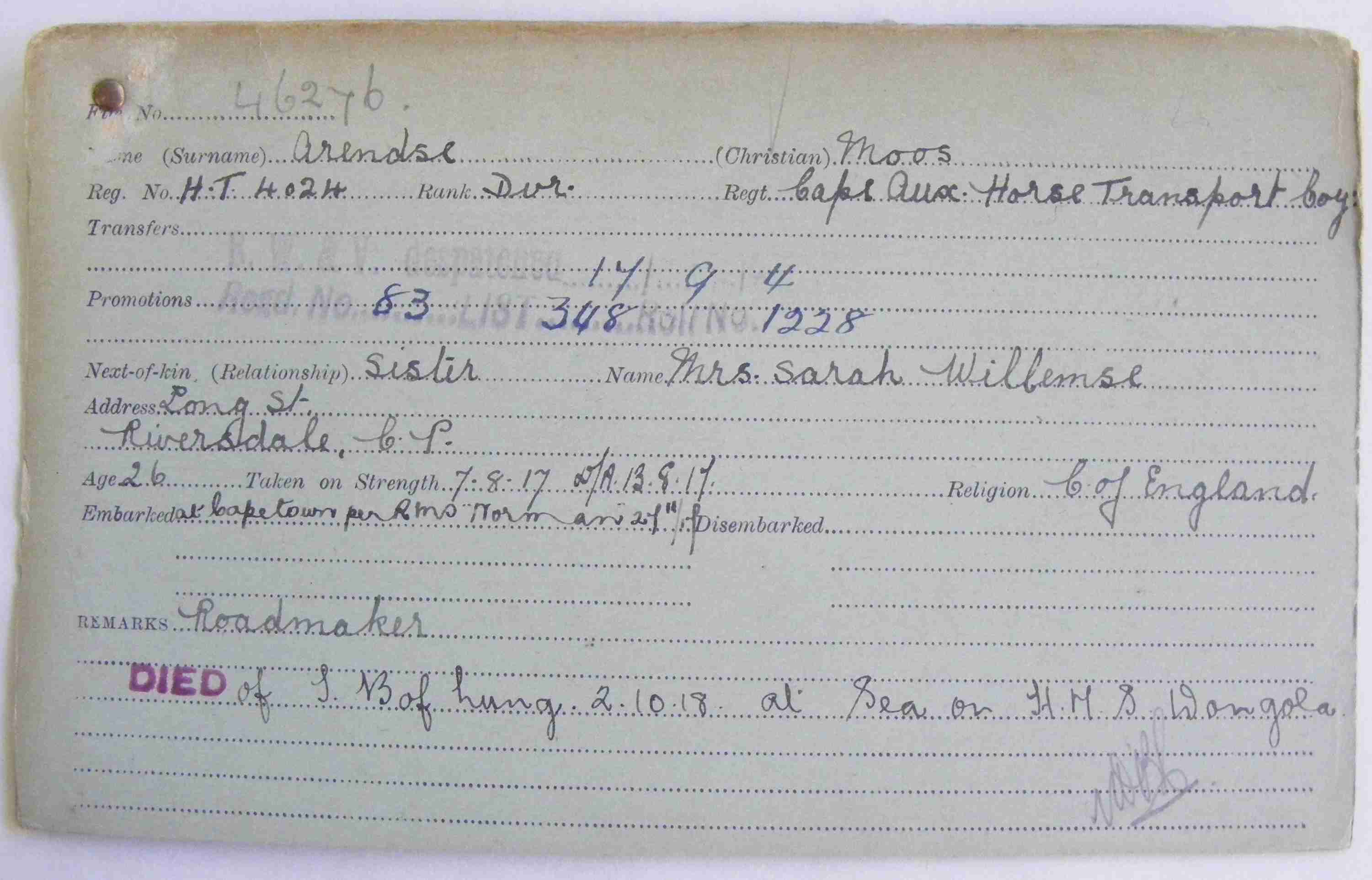 Brother of Mrs. Sarah Willemse, of Long Street, Riversdale, Cape Province |