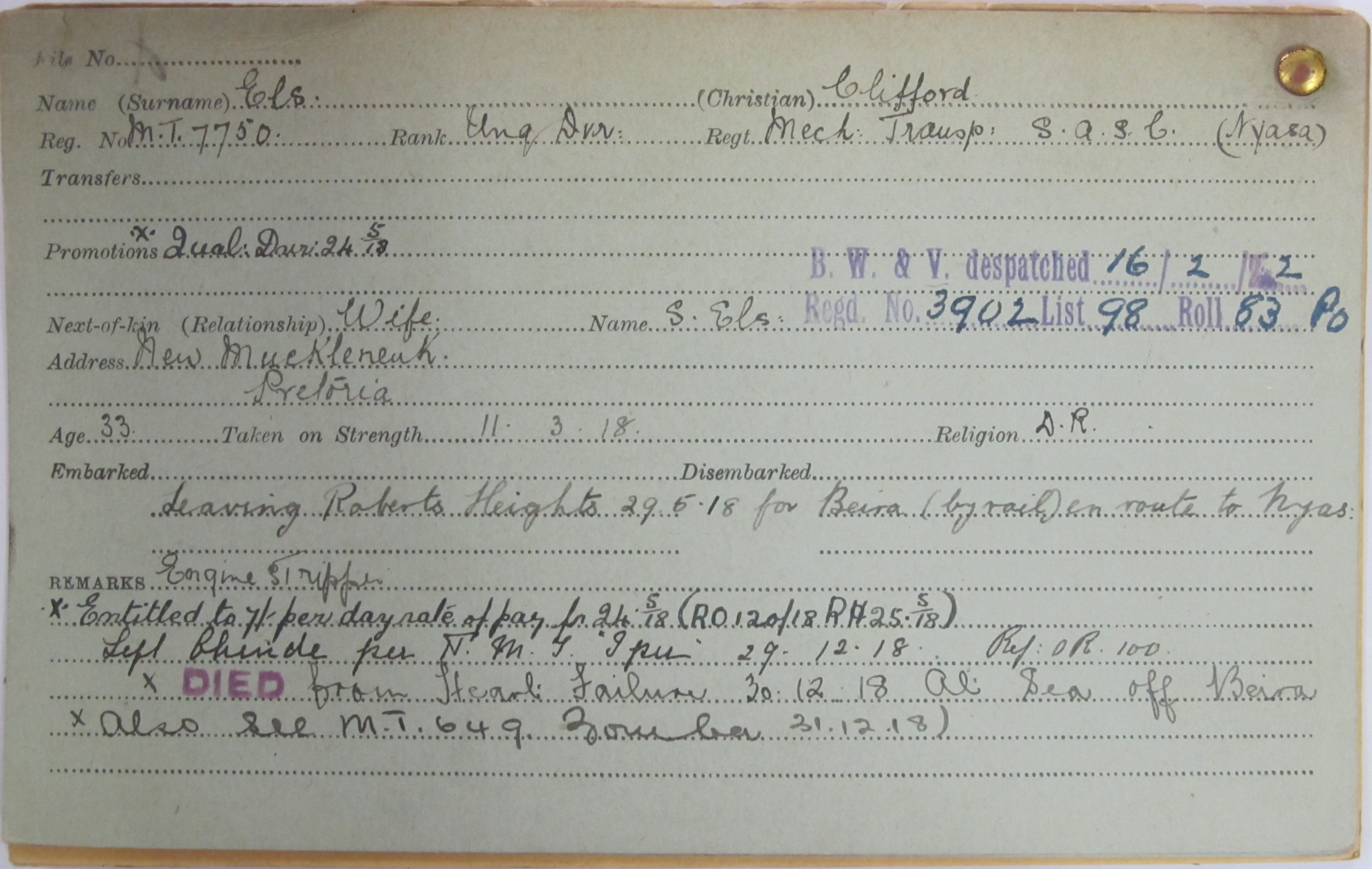 Husband of S. Els, of New Muckleneuk, Pretoria
