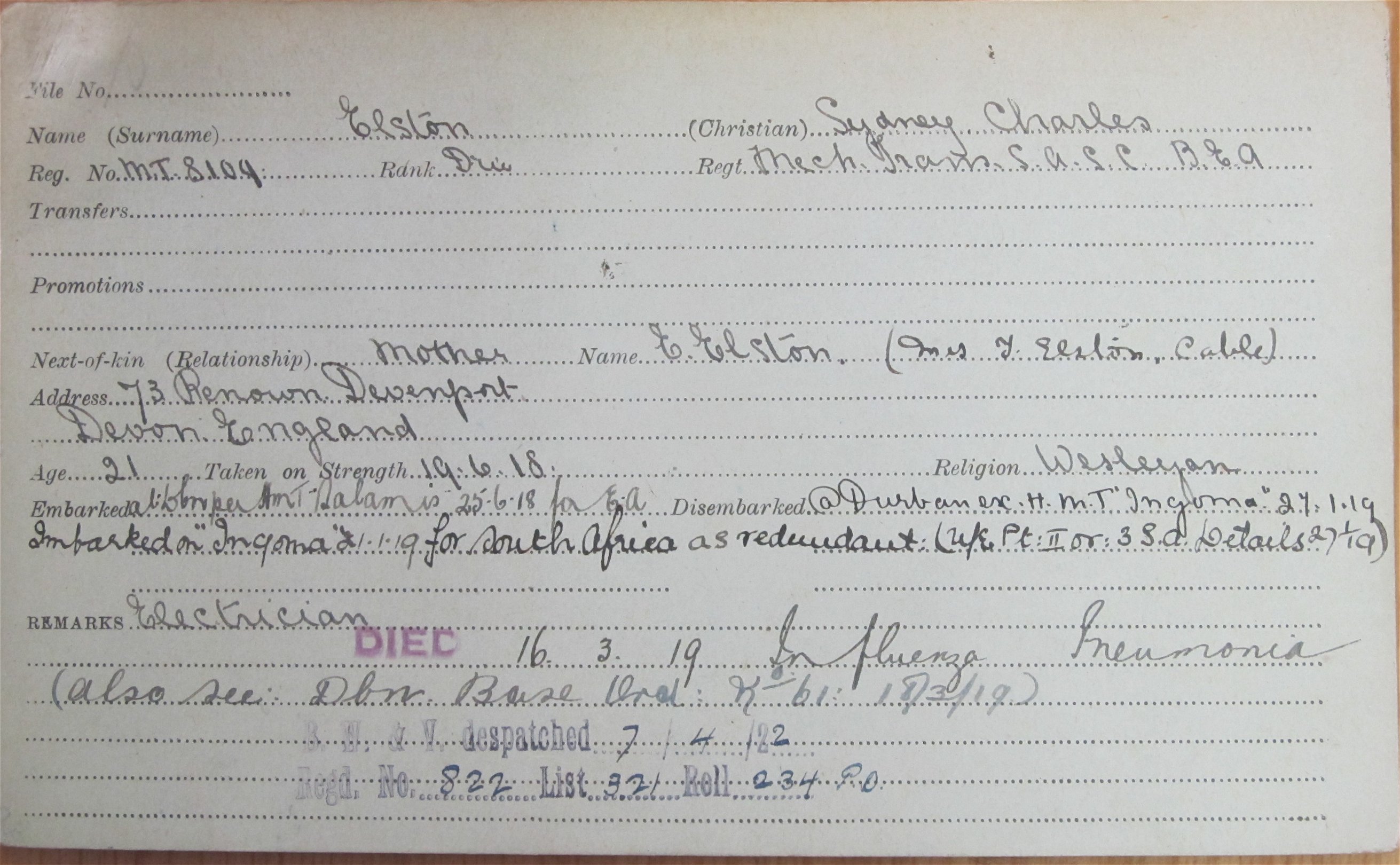 Son of Mrs. E. Elston, of Endean Priory, Kingskerswell, Newton Abbot, Devon, England.