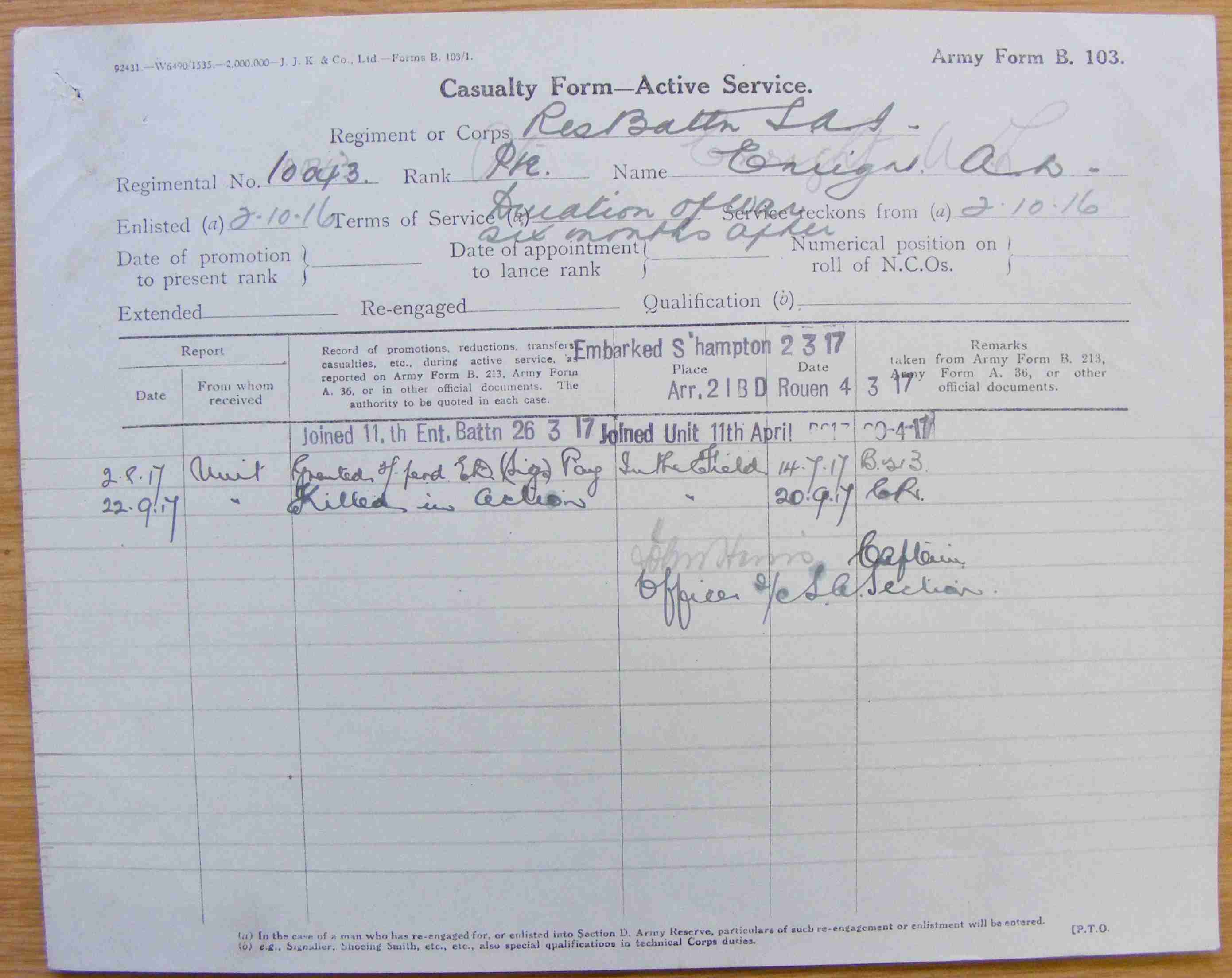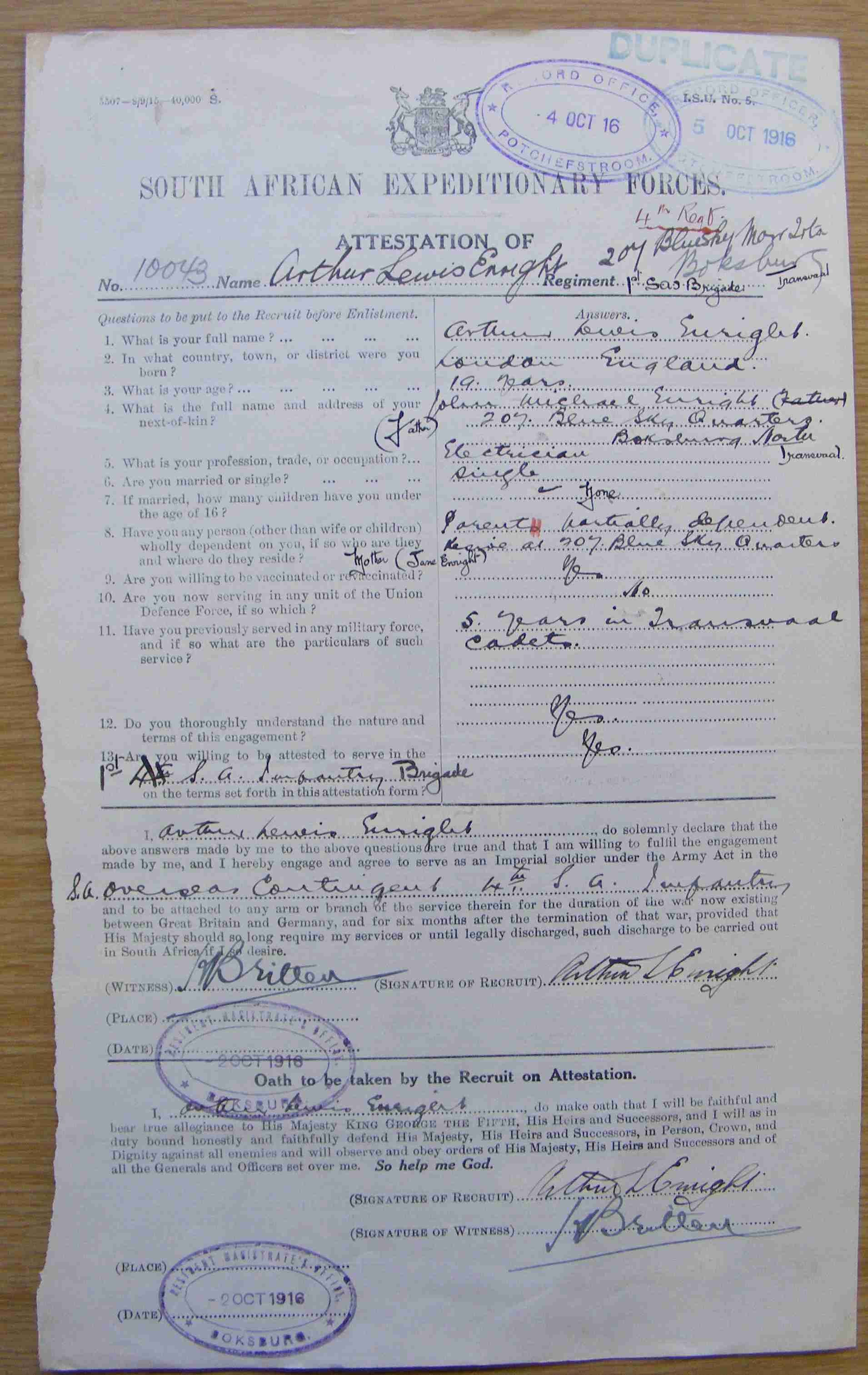 Son of Mr. John Michael Enright and Mrs. J. E. Lewis-Enright, of 44, Leeuwpoort St., Boksburg, Transvaal. ***CWGC has LEWIS-ENRIGHT on memorial
