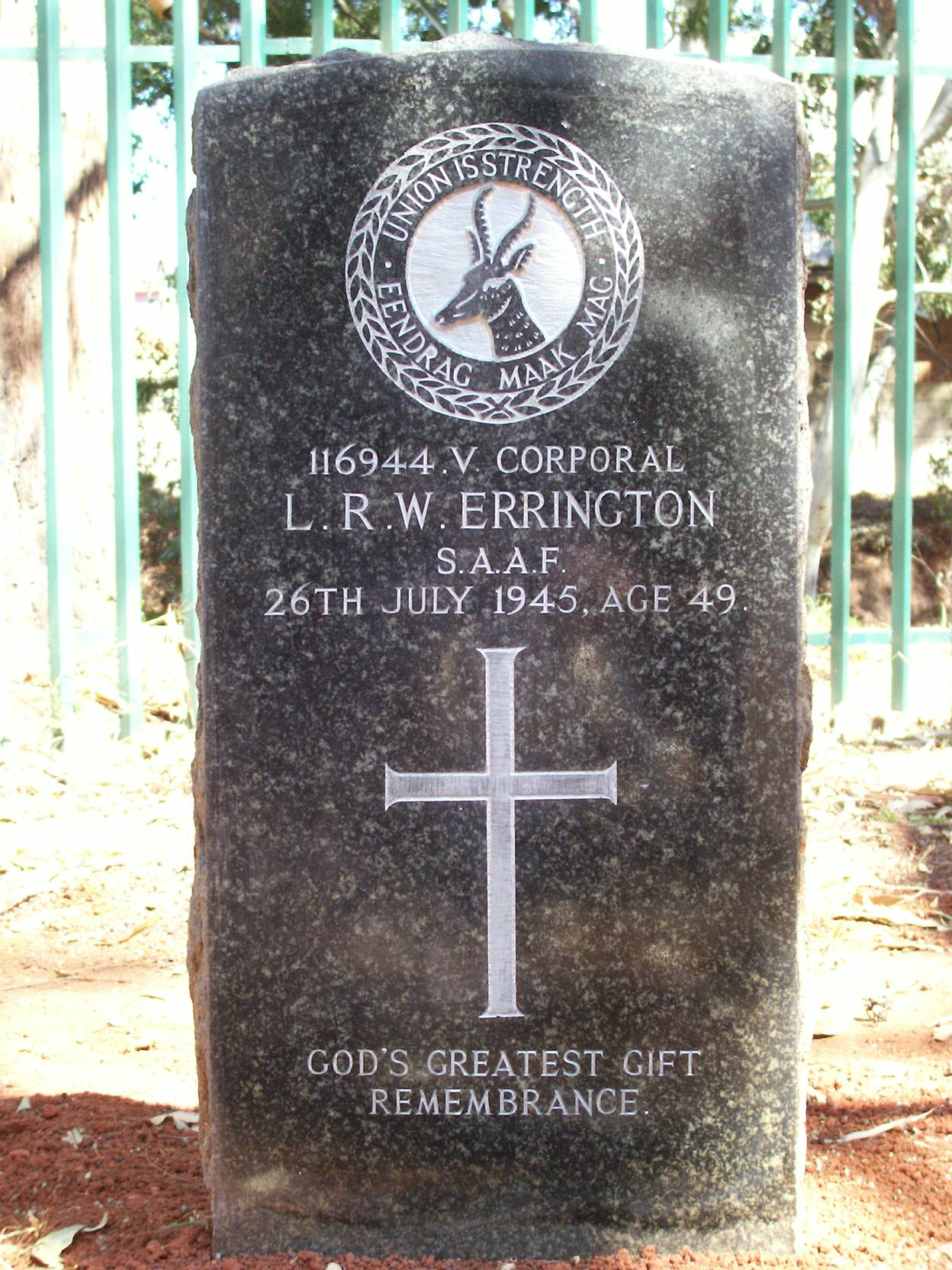 Husband of A. E. Errington, of Johannesburg. Born Transvaal. A refrigerator mechanic. |