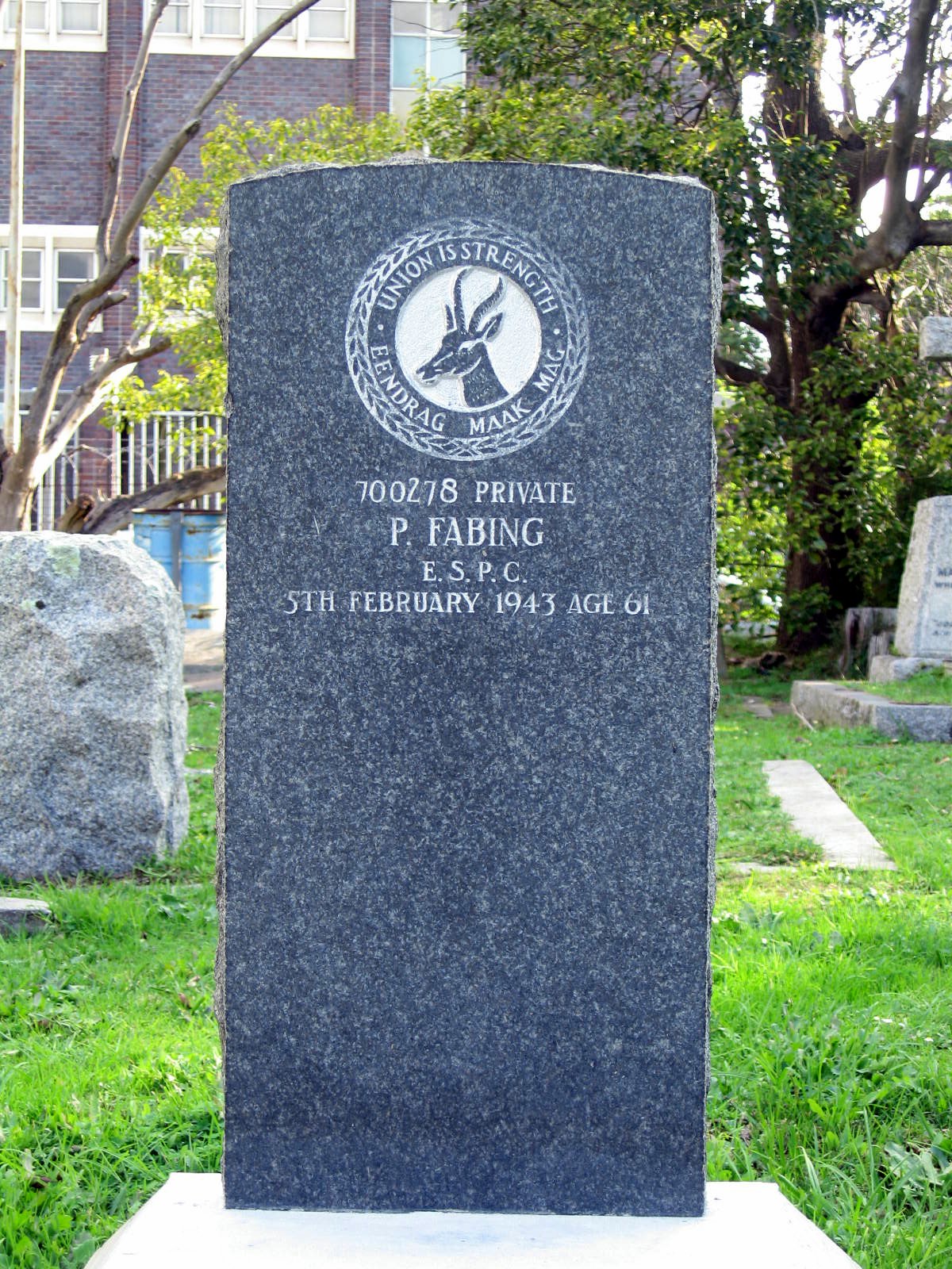 Son of Mr. and Mrs. Mathew Fabing; husband of A. E. Fabing, of Cape Town.