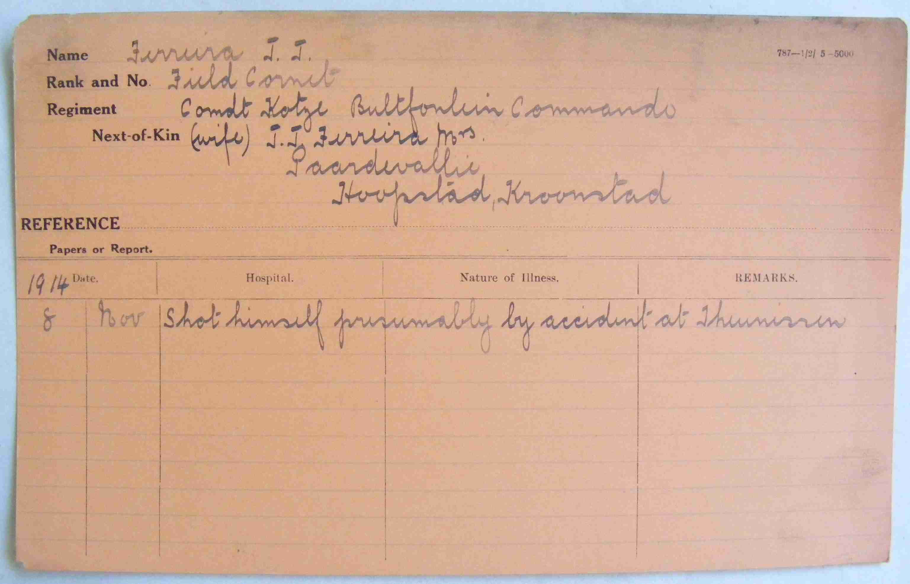 Son of Hendrik Pieter and Petronella Maria Ferreira. Husband of Mrs. J. J. Ferreira, of Paardvallie, Hoopstad, Kroonstad |